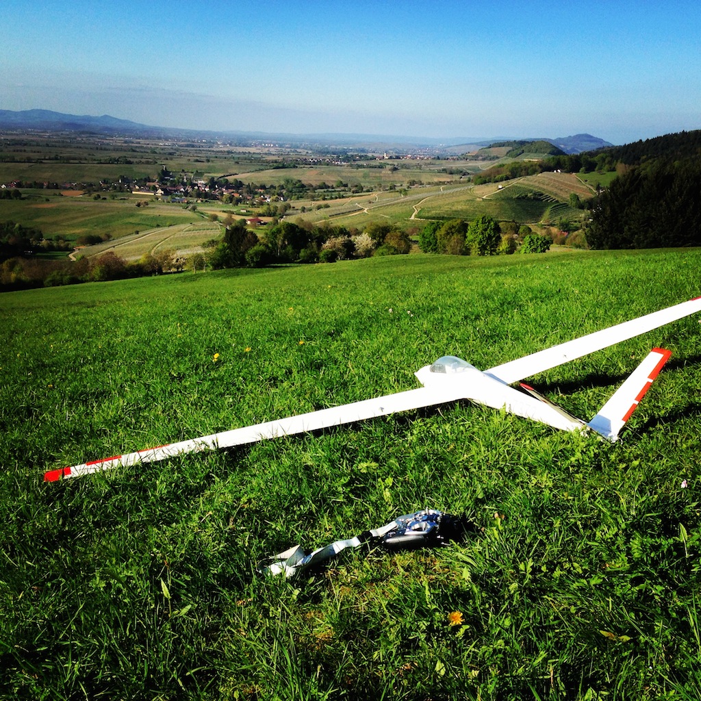 Heute ein gutes Stündchen gemütliches Feierabendfliegen am Weinberghang bei ~ 3 Bft, sogar das kleine schwarze Miststück blieb oben