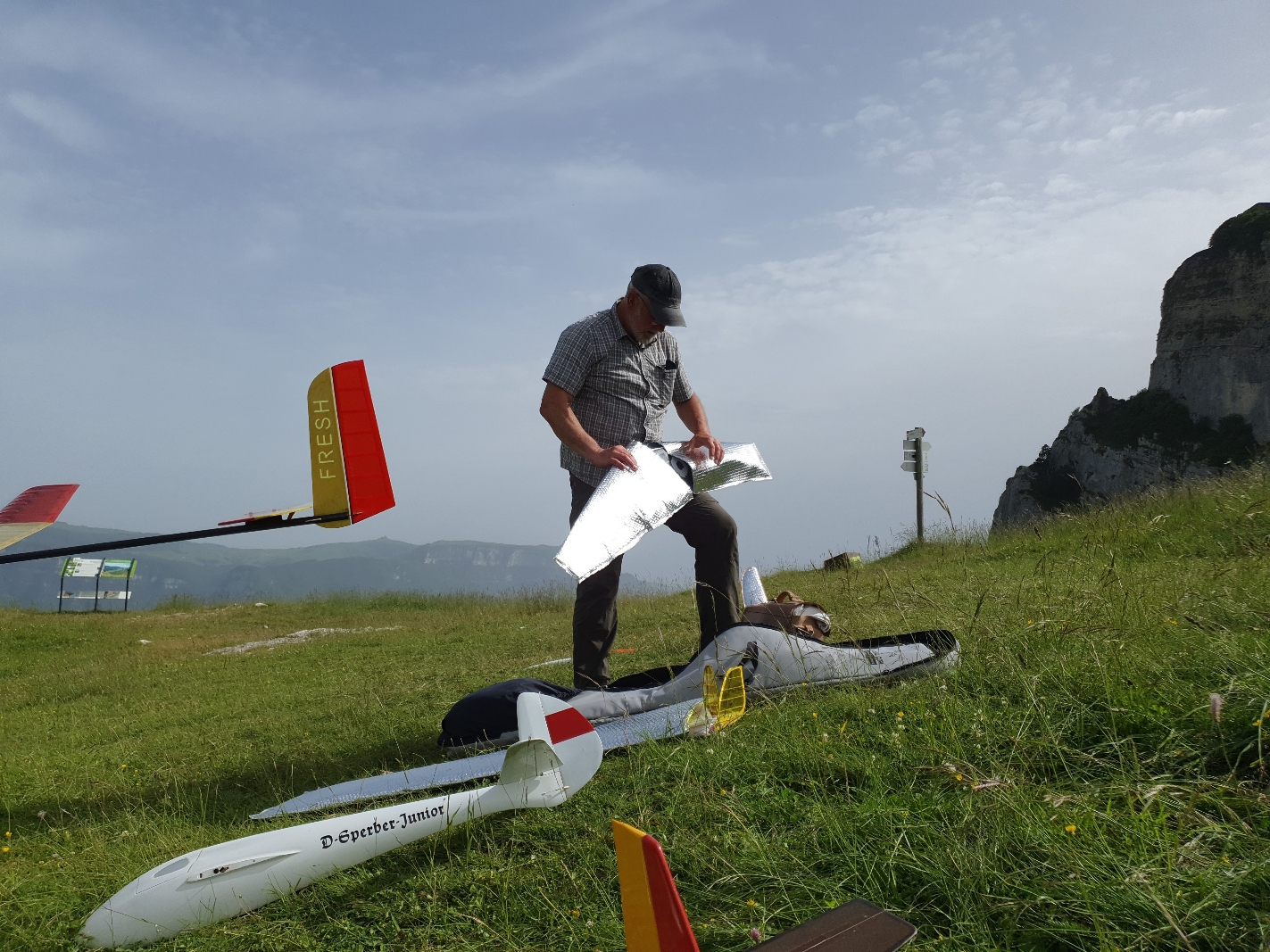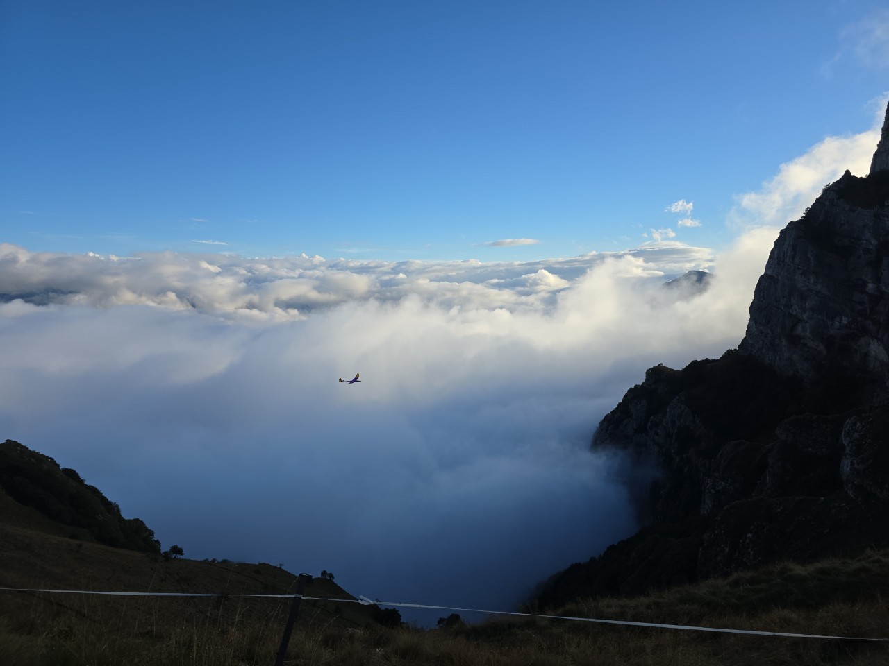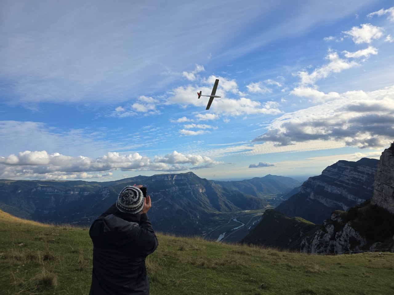 Heute war auf dem Bielmonte, wie vorhergesagt, Vormittags schönstes Thermikwetter mit teils heftigen Ablösungen, nur hatte ich die ehrlich gesagt in der Stärke um kurz nach 9:00 Uhr noch nicht erwartet, ich war also nur mit dem Spinnin Birdy vorne und hätte locker die hArdstyLePINA fliegen können... Aber auch das Birdy hat richtig viel Spaß gemacht und um 10:30 Uhr kam, wie vorhergesagt, die Wolkendecke an. Kurz vor Sonnenuntergang war dann nochmal Sonne angesagt, allerdings mit Wind quasi parallel zum Hang. Morgen soll es super sonnig werden, da kommt dann auch die hArdstyLePINA und Sackgitter mit vor.