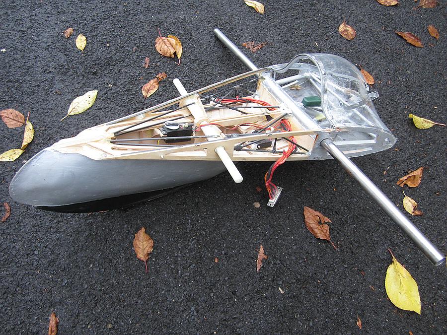 Ich hab dafür bei meiner XIV die Kabinenhaube runter gerissen, ein bisschen Lack aufgetragen und die bisherige provisorische Schaum-Teppichklebeband-Dämpfung der vorderen Kufe durch dieses Gebastel aus Alu, Messing, Silberlost, GFK, Kevlar, UHU plus, Federstahl und Titan ersetzt. Ich bin mal gespannt wie lange das hält. Über Servo einziehbar ist es noch nicht, das hab ich zeitlich nicht mehr geschafft, aber von Hand betätigt funktioniert es gut. Gelandet wird auf der eingezogenen Kufe solange die RC-Betätigung noch nicht drin ist. Auf den Bildern ist die Kufe ausgefahren: