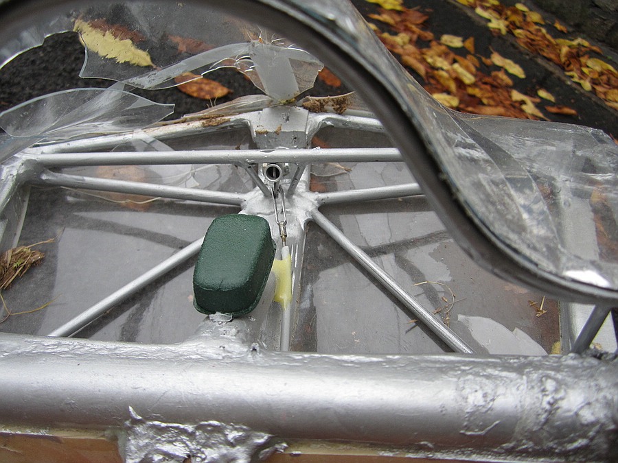 Ich habe ein Kohlestabfachwerk eingebaut, das sich bei der Tragstruktur am Original orientiert. Die Knoten sind mit Rovings umwickelt und verklebt.