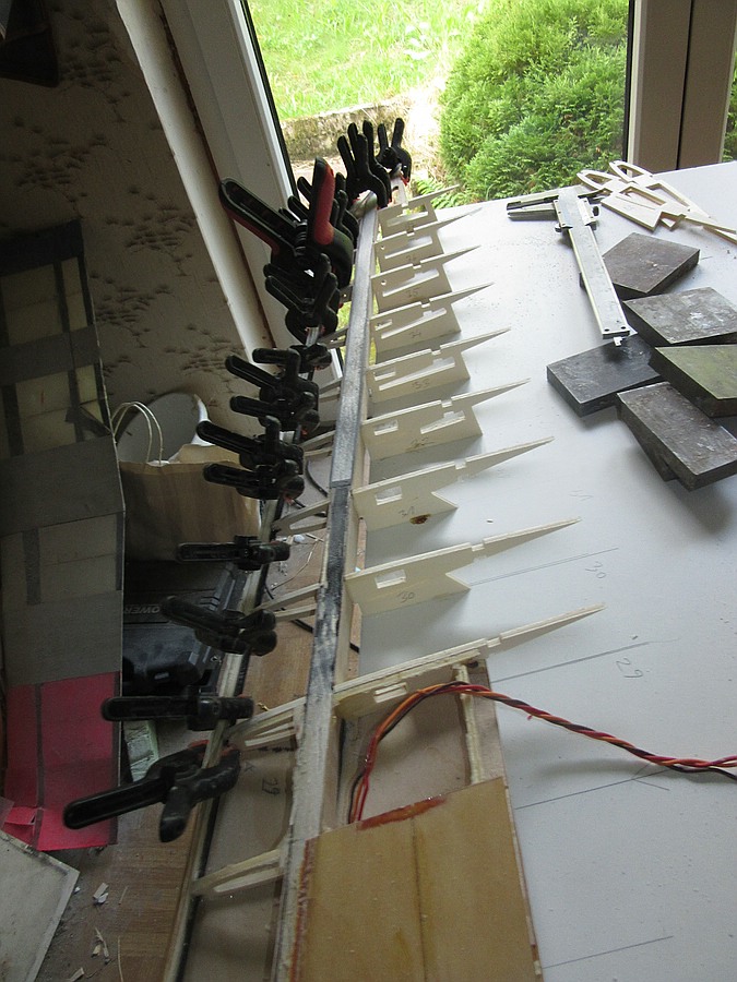 Leider ist der Flieger immer noch in dem gezeigten Zustand von oben, aber zumindest die Ersatzrippen hat mir Thomas dankenswerterweise mal gefräst, eigentlich hätte die schöne Horten längst eine Reparatur mit Grundüberholung verdient :oops: