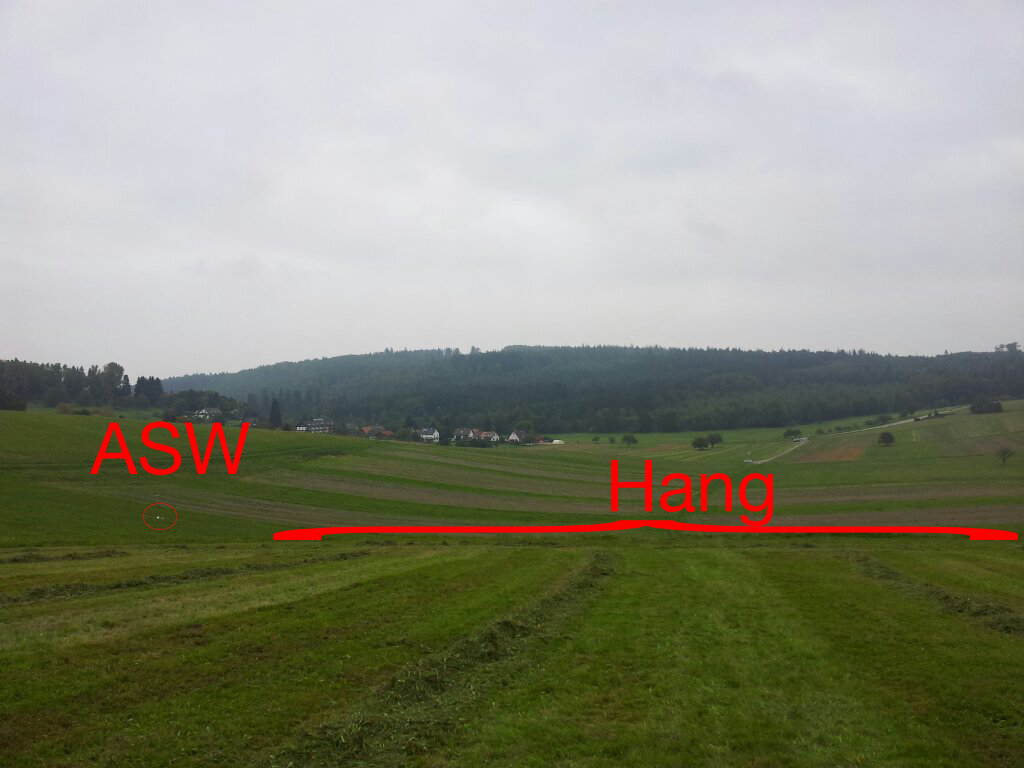 "Asw" konnte sich aus der Hand nie länger als ~3 Runden halten, habe ~5 Außenlandungen hingelegt (immerhin zieh ich nicht mehr wenn ich abgesoffen bin... warum auch -- sogar hier setzt Resignation ein, wenn auch mit positiven Auswirkungen). Da ich nach ~2 Runden aus der Hand + Landeanflug meist so tief war dass schöne Anflüge nichtmehr drin war gabs auch nur Plumpslandungen, wenn auch ohne Bruch. Dummheit halt.