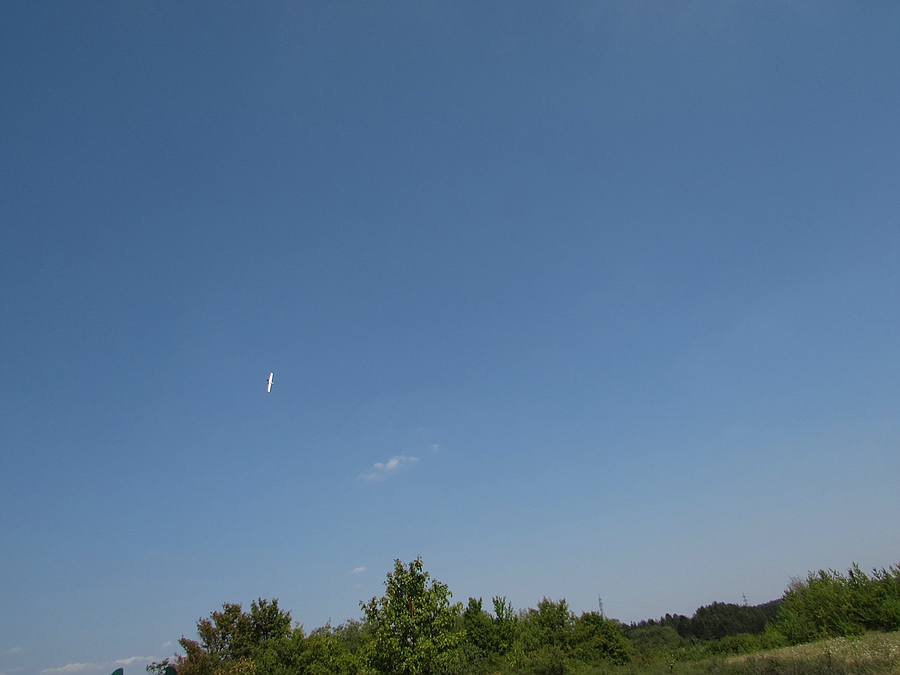 Mein zweiter, der erste wollte irgendwann doch nicht mehr (vermutlich ein Servo, er machte unangenehme Faxen\Eigenleben) und wude würdig aus dem Dienst entlassen, wog mit 650 Gramm 100 Gramm weniger als der erste, fliegt aber (auch bei schwachen Gegebenheiten) nicht besser.