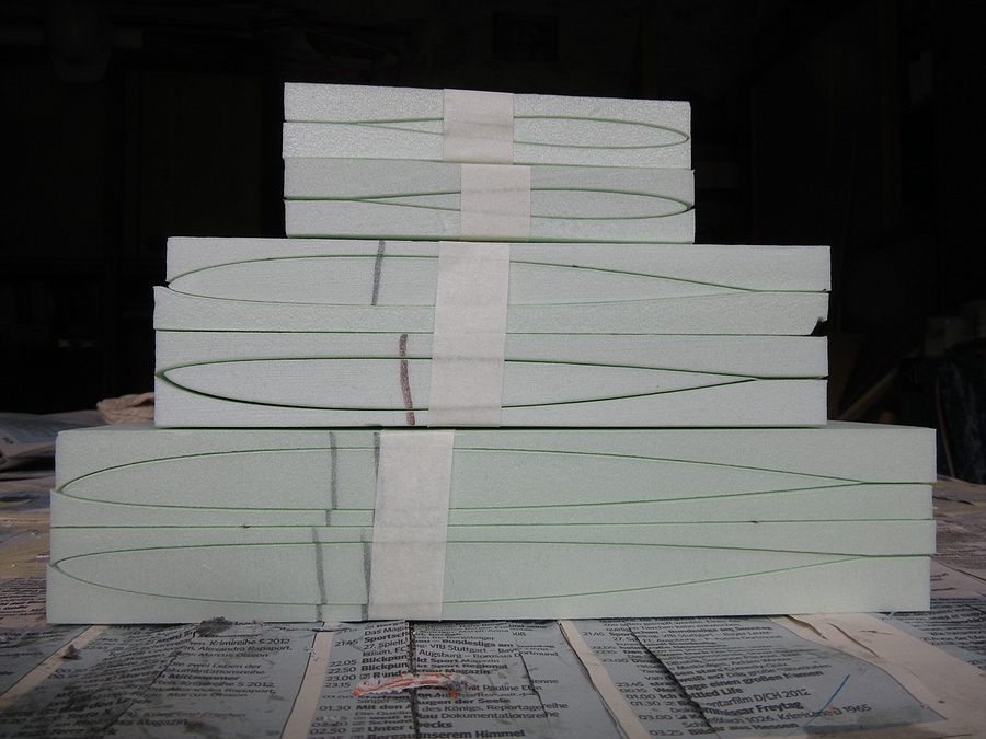 Heute angekommen: 1a Flächenkerne von Wattsi für einen DS-Leitwerker mit eigens von mir dafür entwickelten Profilen, der für den Urlaub bis Oktober noch selbst gebaut werden soll. Der Rumpf soll aus Elmars Whisper-Rumpfform entstehen....das wird spannend
