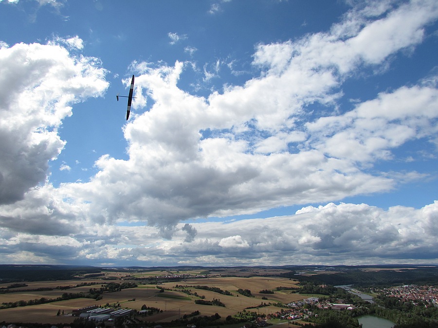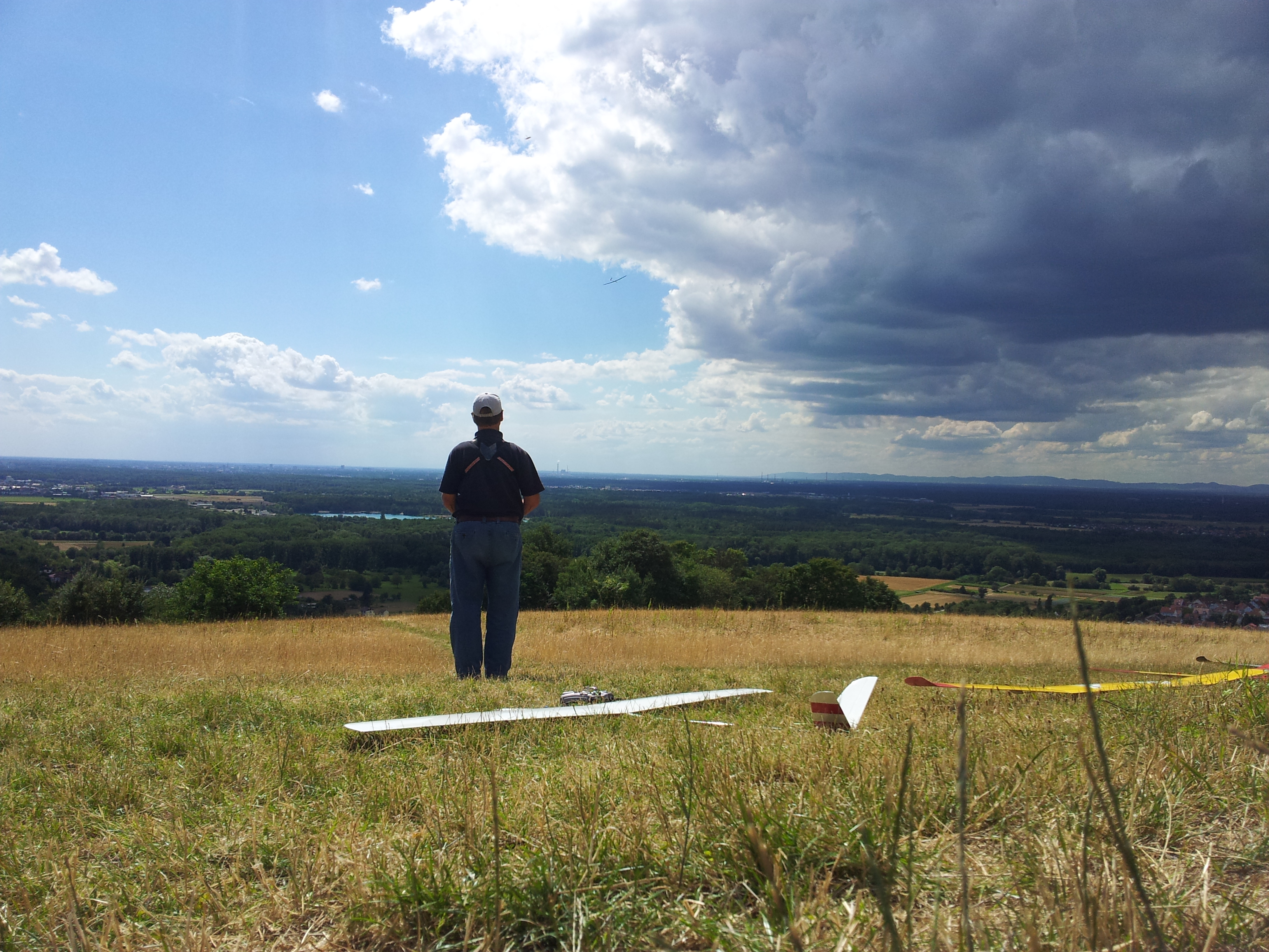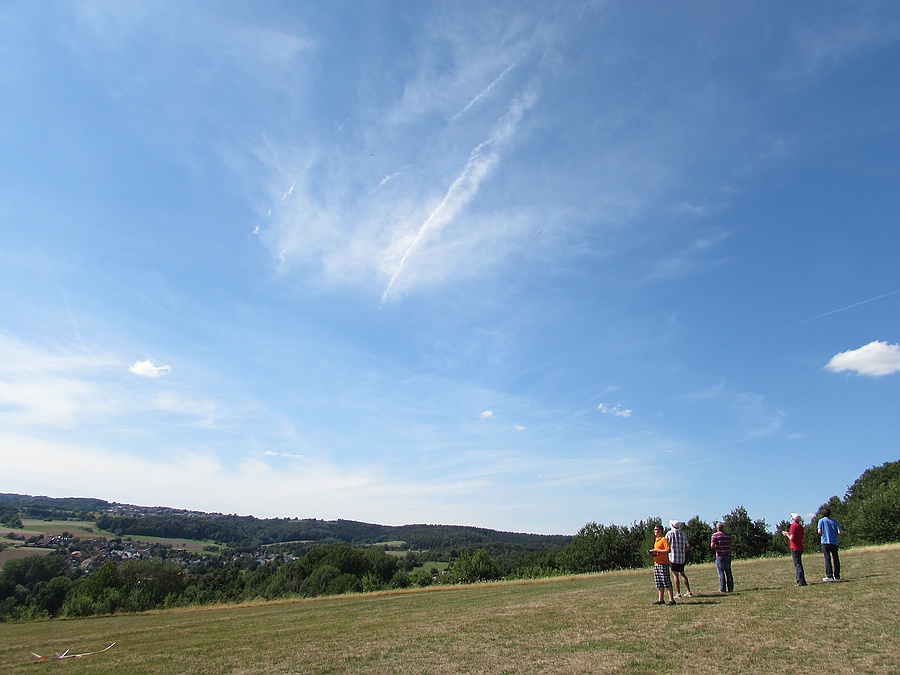 Heute wieder mal weit über 30°C, da war der Spessartsegler-Vereinshang bei 3-4 Bft kühlender Brise aus W -WSW einer der angenehmeren Orte um den Feierabend zu verbringen, es hat die meiste Zeit sehr gut und ziemlich konstant getragen, aber dafür war erstaunlich wenig los.