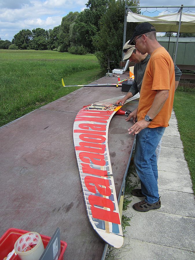 Startvorbereitungen für den Parabola-XXL-Erstflug von Thomas, steve hilft