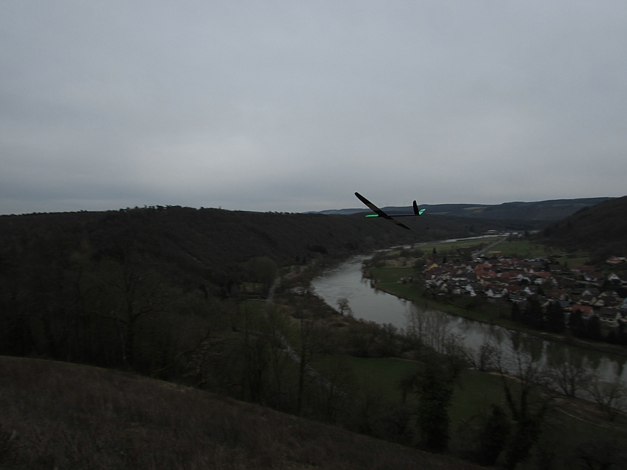 Heute kaltes, aber trotzdem sehr spaßiges Hangfliegen im Spessart mit viel rauf, aber auch viel runter bei 3-4 Bft NO.