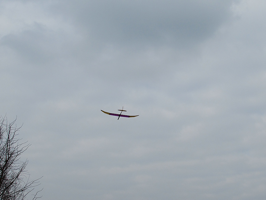 Uwes vor vielen Jahren nach Bauplan gebauter Spatz mit toller Thermikleistung, innerhalb einer Pinkelpause des Bodenpersonals gings vom Start bis zur Sichtgrenze