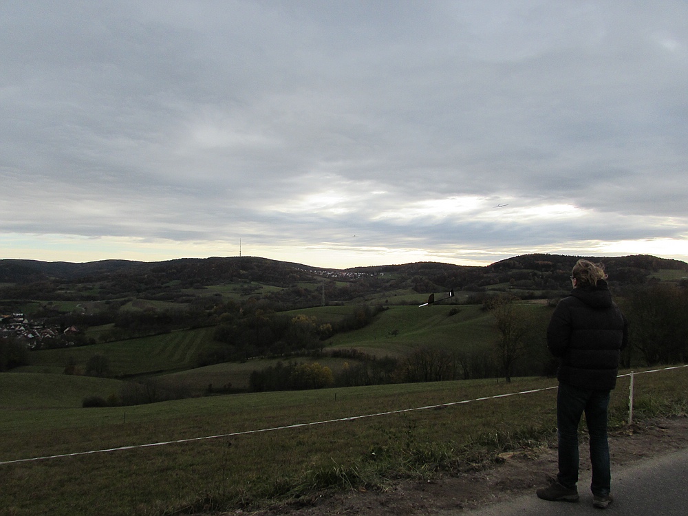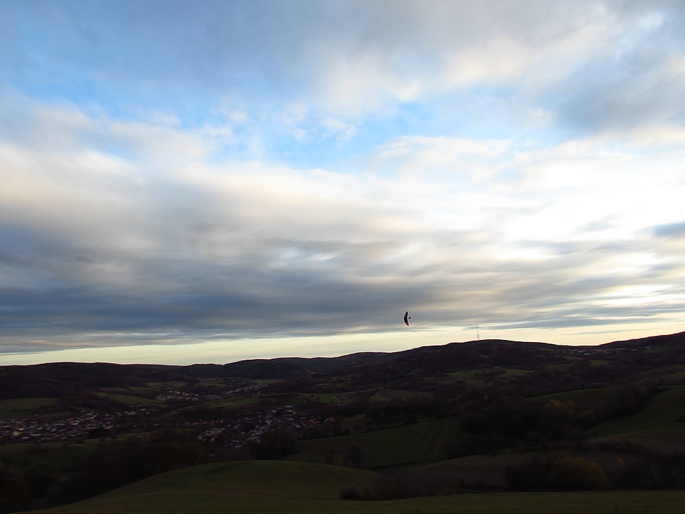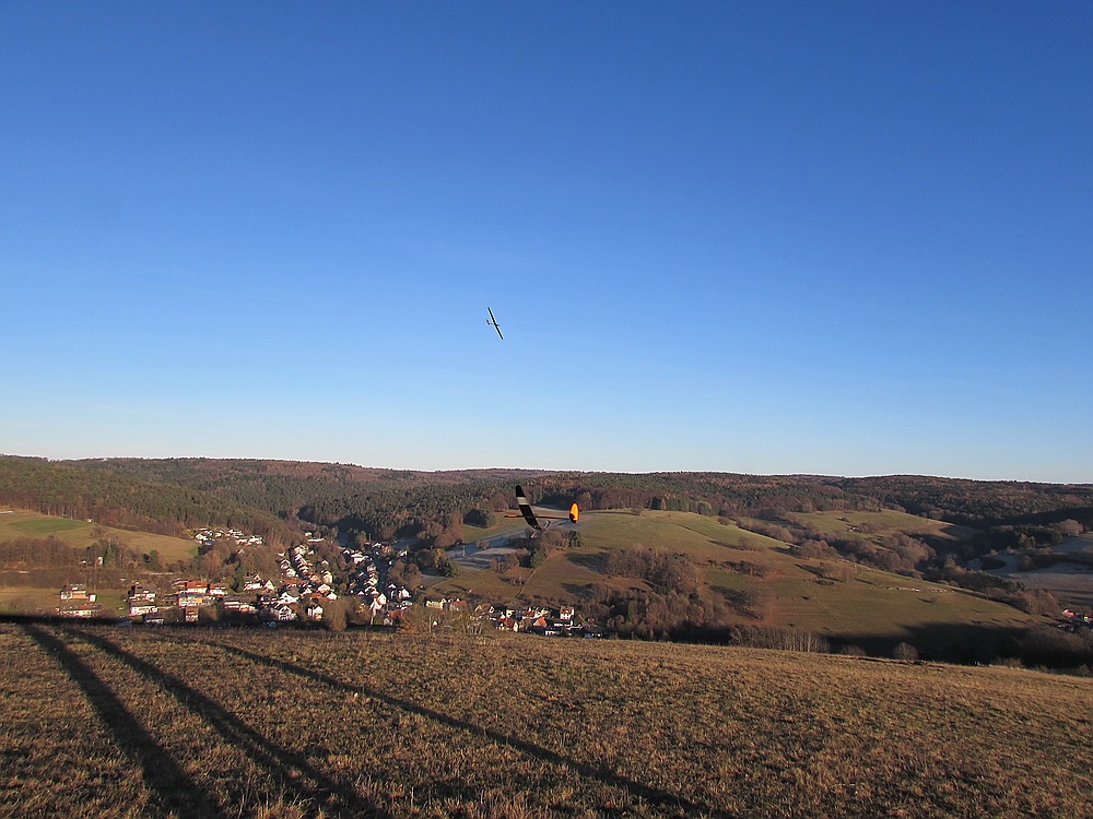 Schönes Spätherbstwetter mit etwas Ostwind, etwas Thermik bei knapp über 0° C und langen Schatten am Hang.