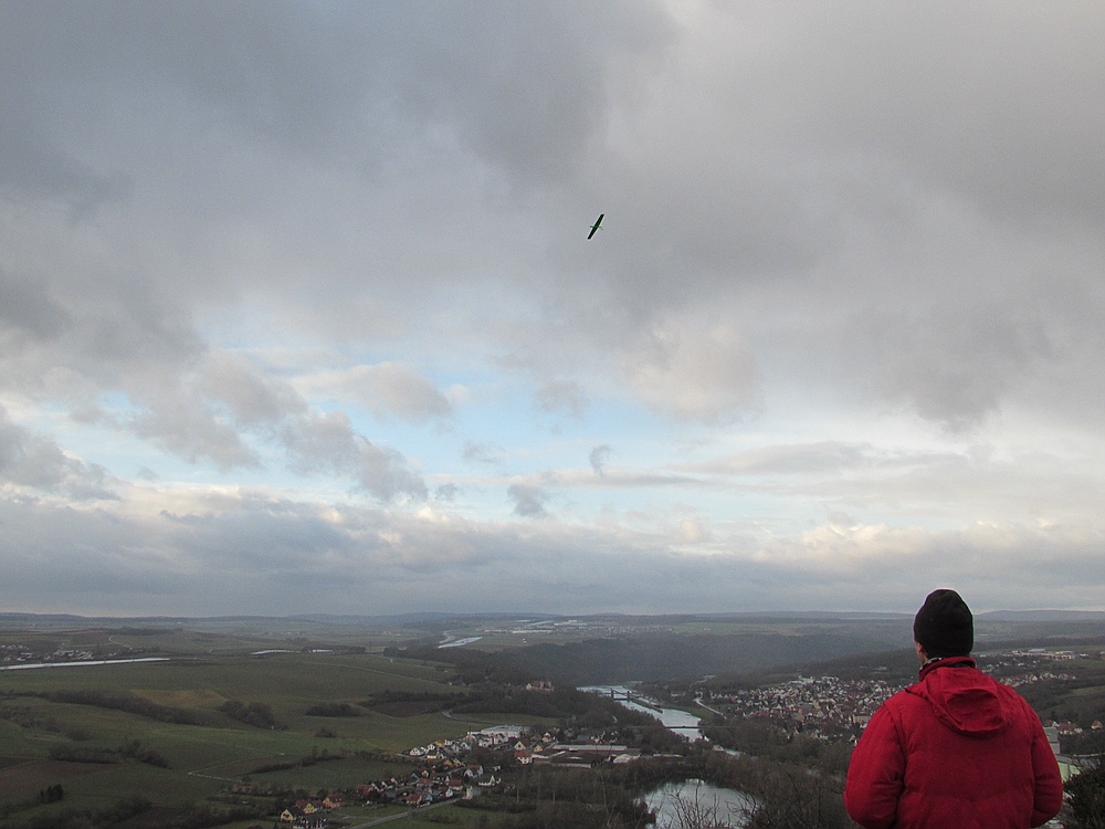 Heute bei der Arbeit hab ich immer mal zum Bergfried meiner Burg geschaut, aber zum Ende der Kernzeit um 12:00 Uhr und lange darüber hinaus hing die Wertheimer Fahne ohne jede Bewegung nur schlaff senkrecht runter. Plötzlich kurz vor 14:00 Uhr etwas Bewegung im blau und gelb und beim nächsten Blick war klar: Wind genau aus West kommt auf, also schnell Kuli weg legen, Computer runter fahren und ab zum Felsen. Kurz vor 15:00 Uhr war der ARES in der Luft und nach dem testen des Tragens dann der Minirock :)