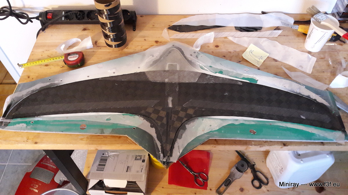 Da die BWB-Minibretter sehr kompakt und dadurch schon recht robust sind kann man sie eigentlich nicht leicht genug bauen, denn für die windigeren Tage kann man immer noch Ballast zuladen ohne in der Luft Probleme mit der Festigkeit zu bekommen, der geringe Maxiamlauftrieb führt zu einem größeren Wenderadius statt zum Biegebruch.