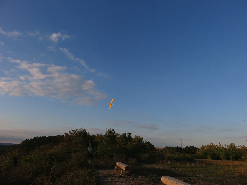 ja, es wird halt schon verdammt früh dunkel, inzwischen ist nur noch bis max 20:00 Uhr Fluglicht, bei bewölktem Himmel noch kürzer. Nach den eher windarmen letzten Wochen ohne viel Feierabendfliegen kam mir der frühe Sonnenuntergang der letzten beiden Flugtage als krasse Veränderung Richtung Winter vor :shock: ......wenigstens sind die Temperaturen noch sommerlich.