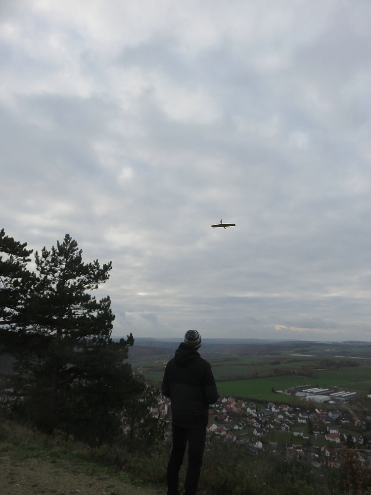 ....aber egal, ein bisschen was geht immer und nach zwei wieder hoch geholten Absaufern direkt nach den Starts von XBOW2 und Curst Blau kam beim DS an der hinteren Hecke am Fels doch noch einiges an Flugzeit zusammen.....Hauptsache wieder Zuhause....also draußen :)