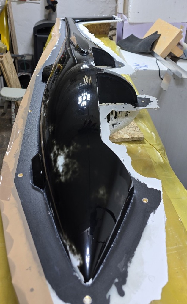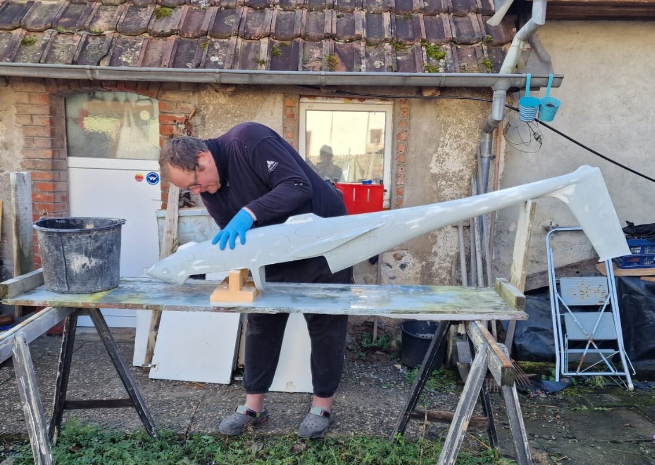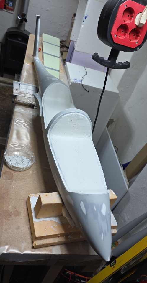 Ich habe die letzten 2 Tage, neben den Flächen für Stephans Libelle, mit nassschleifen des Rumpfs und dem Haubenrahmen des Twin verbracht.
