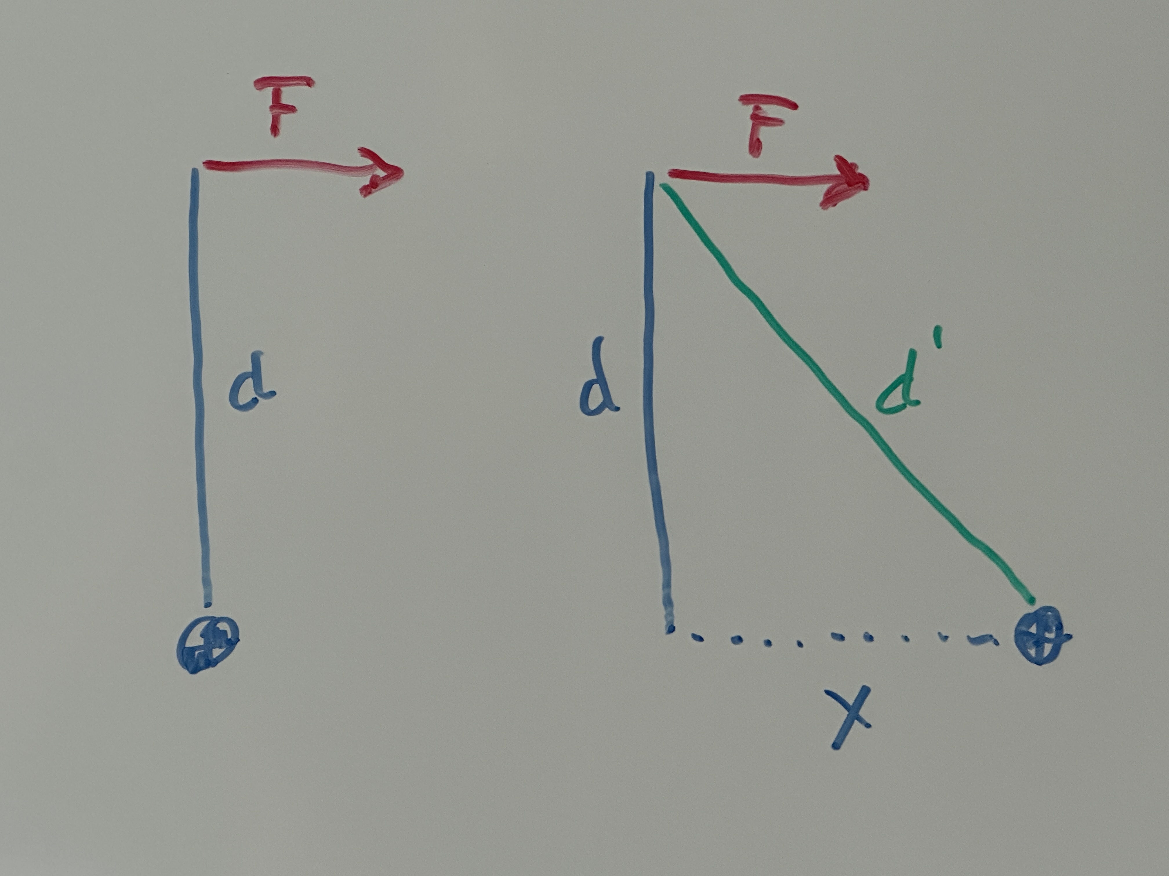 Wenn der Abstand "d" des Propellers zum Rumpf gleich bleibt, die Kraft in der Schubachse gleich bleibt aber der Angriffspunkt der Kraft weiter hinter dem Schwerpunkt ansetzt, wie Du schreibst, dann wird doch der effektive Hebelarm grösser und damit auch das Drehmoment (Kippmoment) um den Schwerpunkt ?
