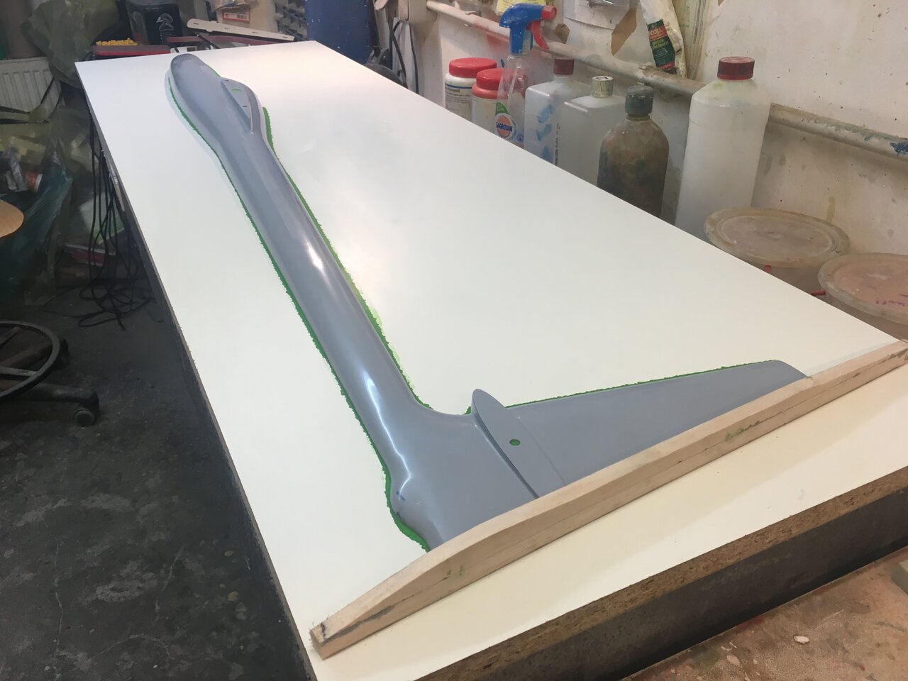 Am Ende des SLW lässt du da die Form nicht offen, um die Naht nachzurollen und das Seitenruder bisl zu versenken un der Flosse oder sägst Du die Form später auf? Wie is das geplant?