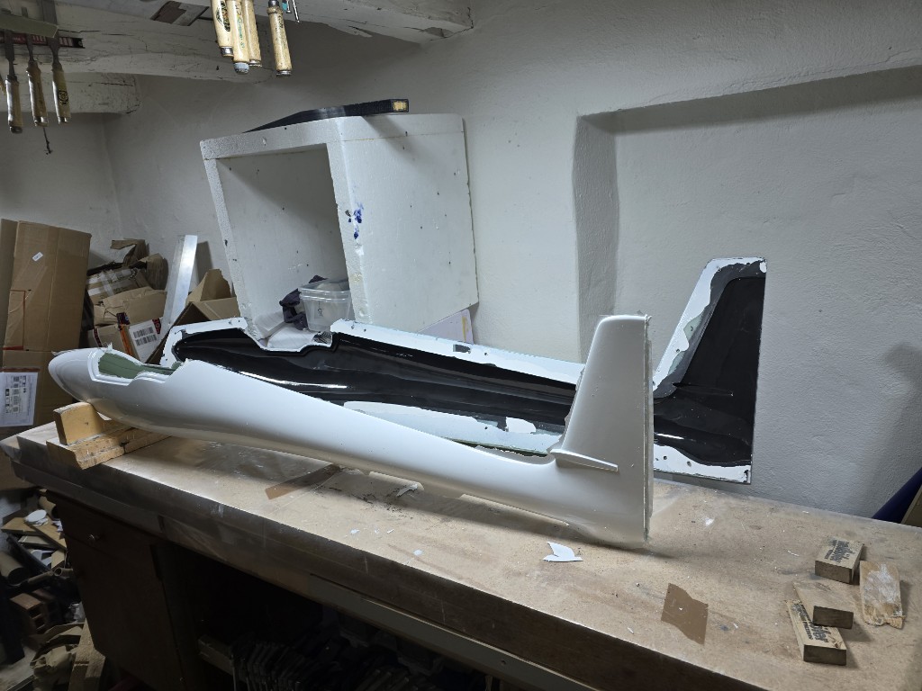 Zudem hab ich leider auf der Oberseite im Bereich der Ruder zu viel weggeschliffen und musste etwas aufspachteln.