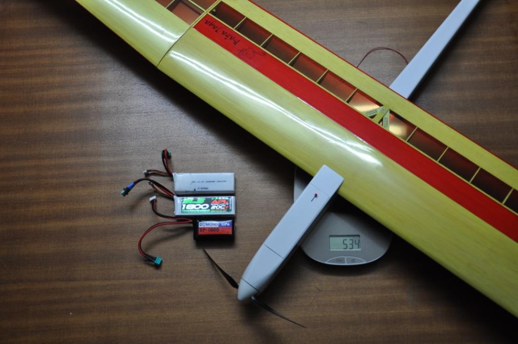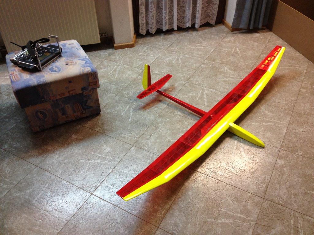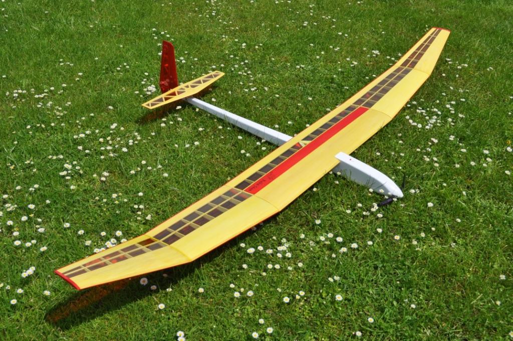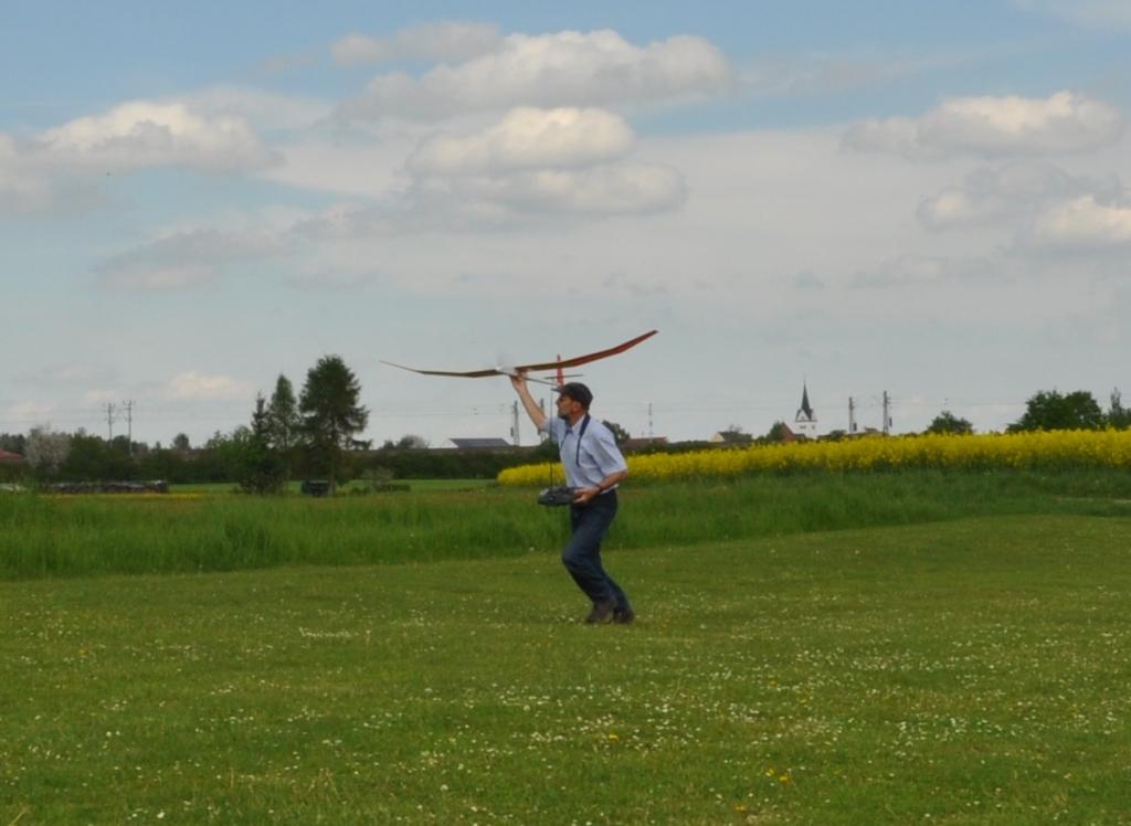 Das Abflugewicht hat sich um genau 100g erhöht und komme somit auf 570g mit dem Elektrorumpf. Der Segler wiegt 470g.