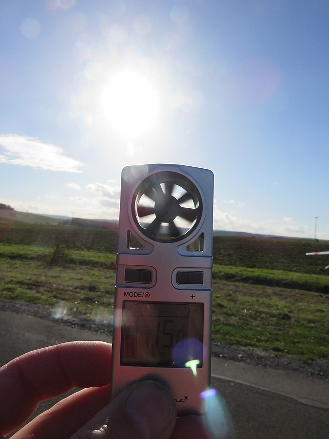Heute schwacher SSO-Wind, der im Laufe des Nachmittags immer weiter Richtung Ost drehte, zu östlich für den Südhang, zu südlich für den Osthang