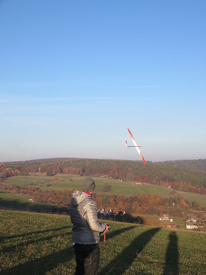 Wir haben uns für den Südhang entschieden und konnten mit ein paar Thermikblasen etwas Flugzeit zusammen kratzen, für ne halbe Stunde oder so ging es sogar recht gut und großflächig für etwas mehr Spaß und das Spessartsegler-Pflichtprogramm