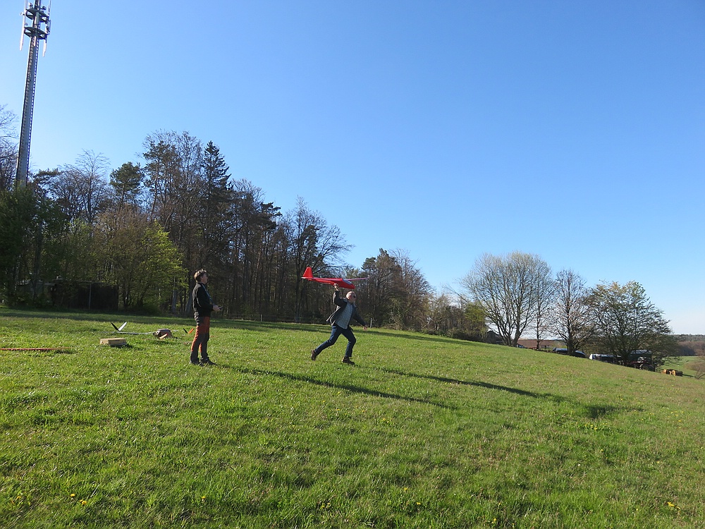 Leider ohne Bilder vom Fliegen, weil nur kurze Wurf-Flüge möglich waren...