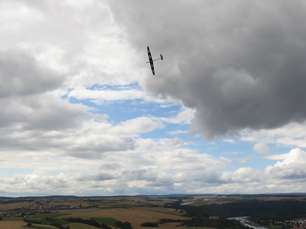 Der Azorace ist sehr gutmütig, nimmt für die hohe Flächenbelastung Thermik gut an und lässt sich schön im Aufwind kreisen....also für ein DS-Modell eine vollkommene Fehlauslegung