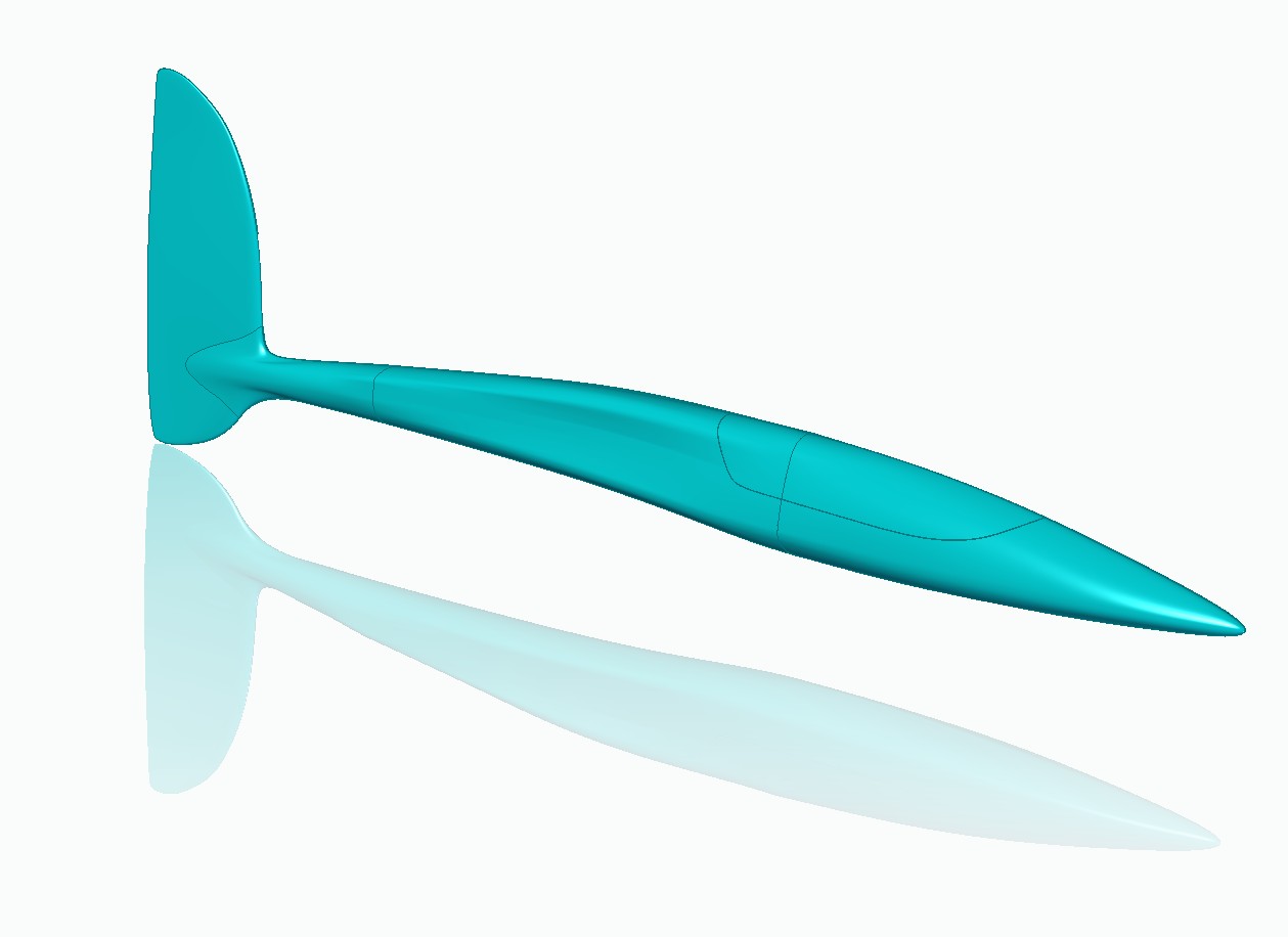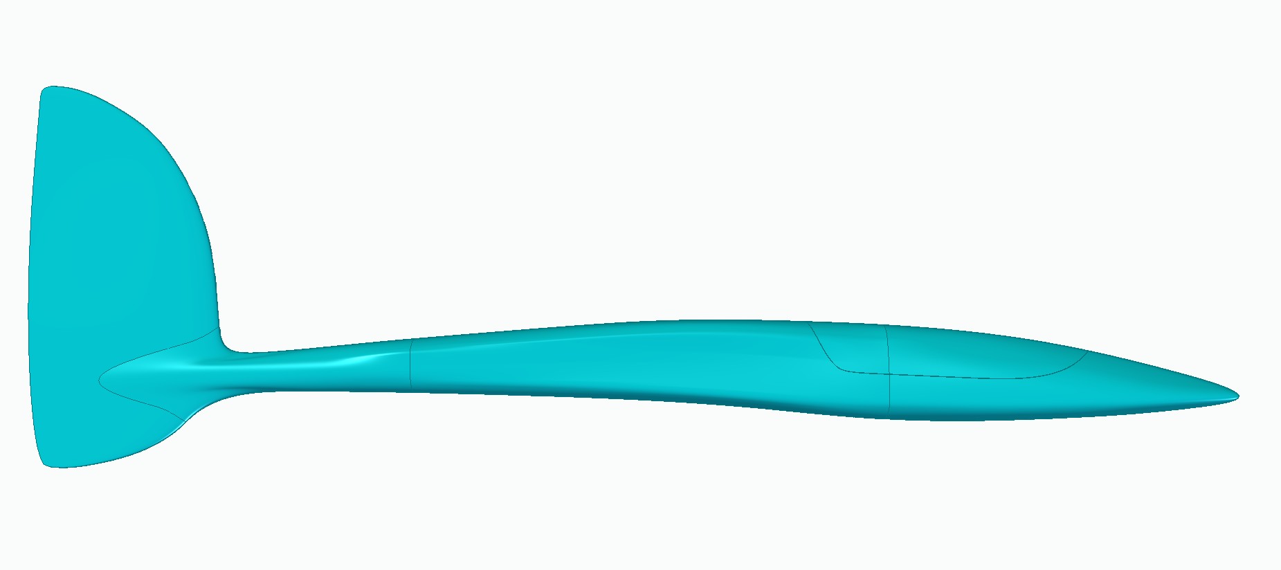 Mit dem Strong-Rumpf und einteiligem Flügel hab ich einen klassischen Brettgrundriss mit vorgepfeilter Scharnierlinie gebaut, zu dem von Dir gezeigten neuen Rumpf gehört ein zweiteiliger Flügel mit der Steckung und dem unveränderten Grundriss der Azorace-Außenflügel, damit ist die Scharnierlinie ohne Pfeilung und die Nasenleiste leicht zurück gepfeilt.