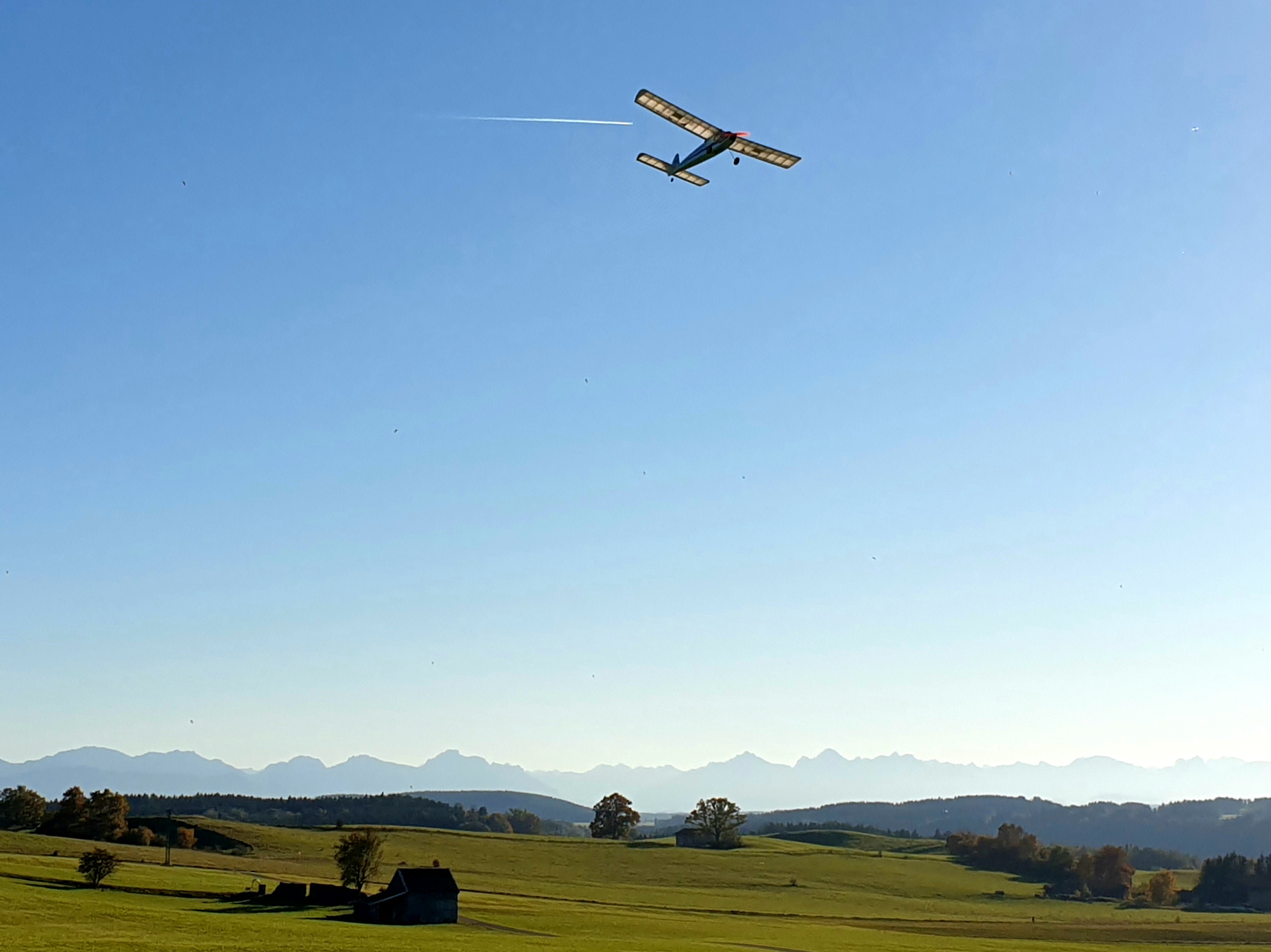 Heute bei Windstille, Kaiserwetter und tollem Bergpanorama die Erstflüge der Lidl Drehflügler und vom Kadett durchgeführt.