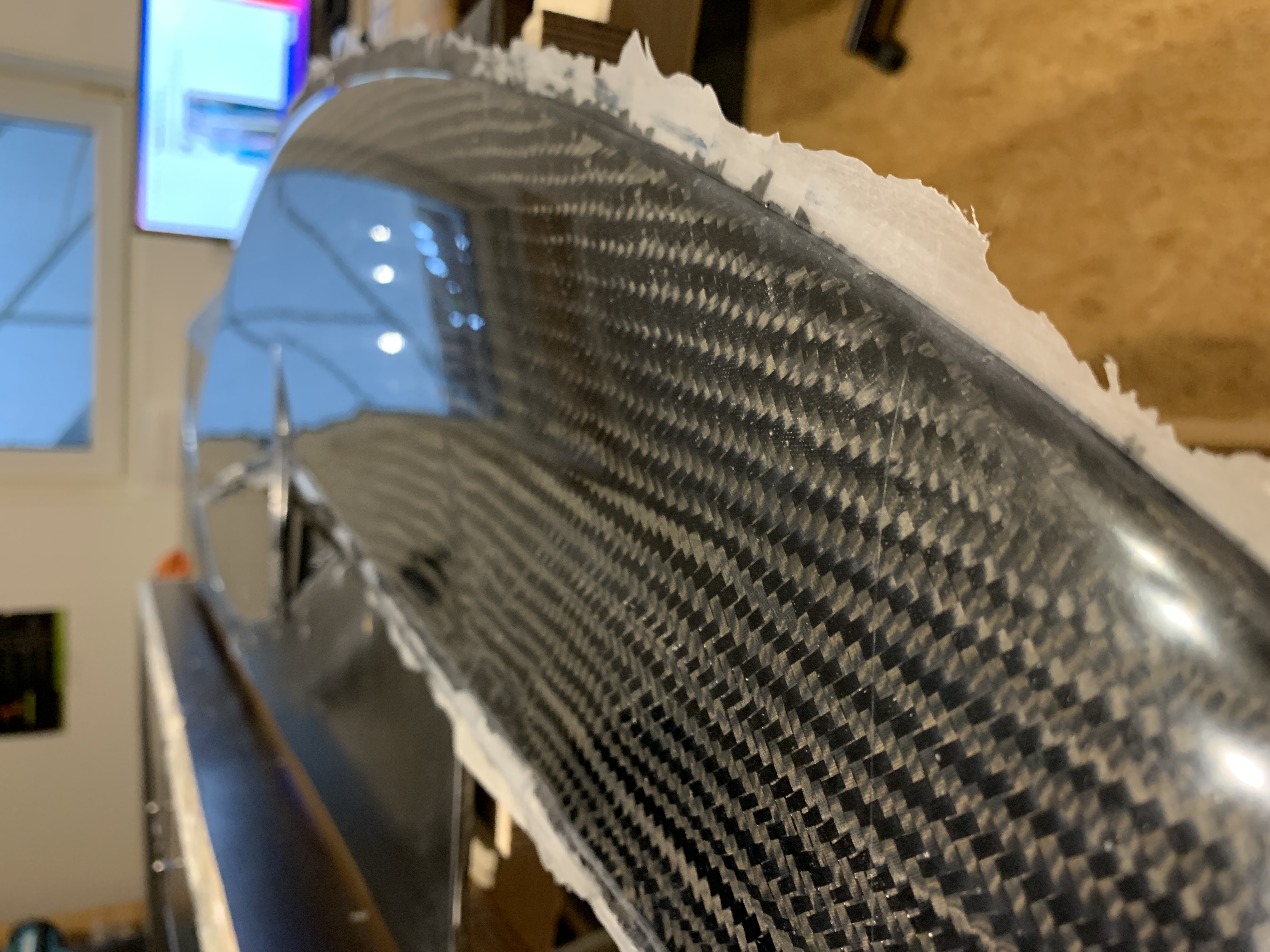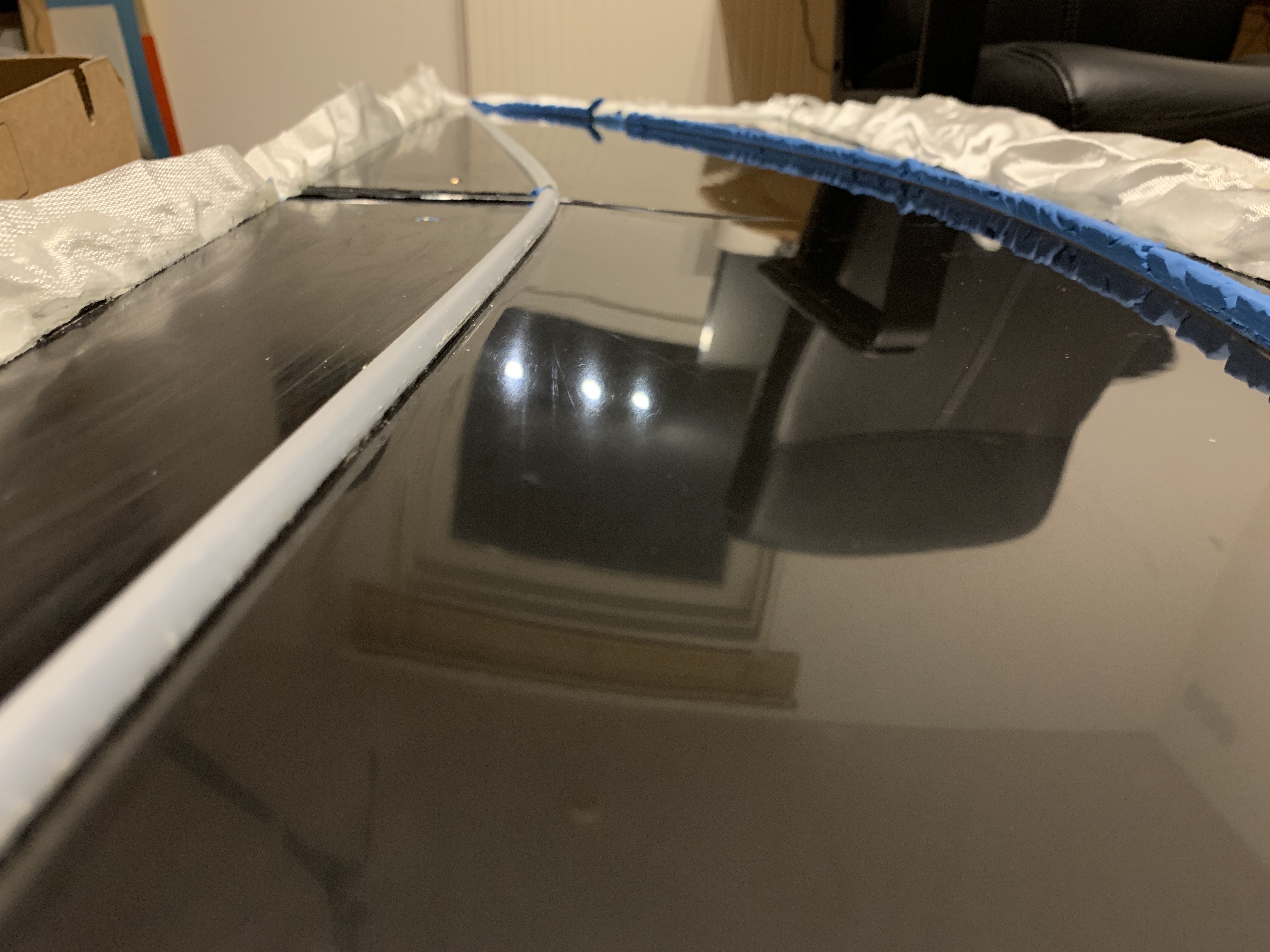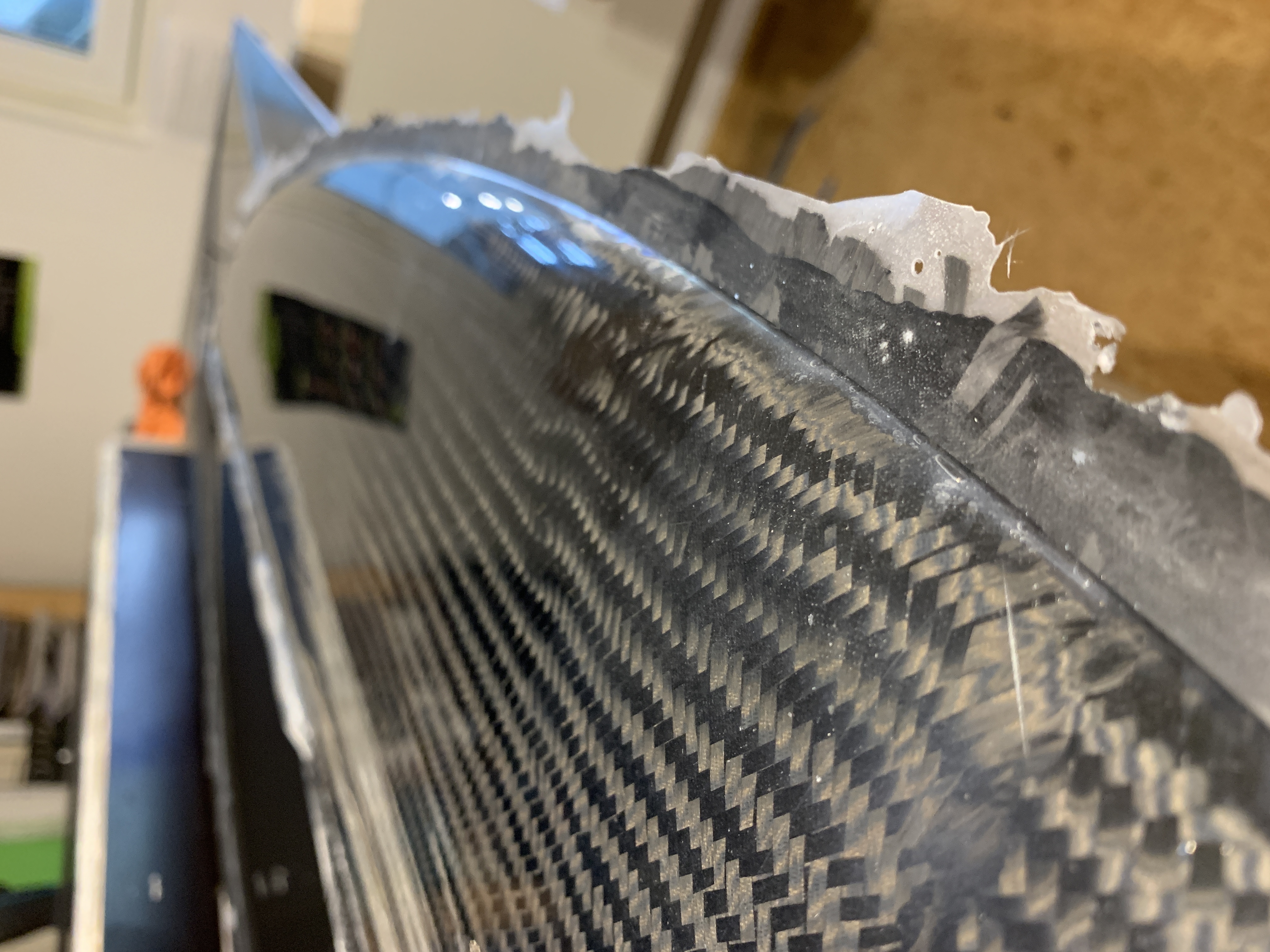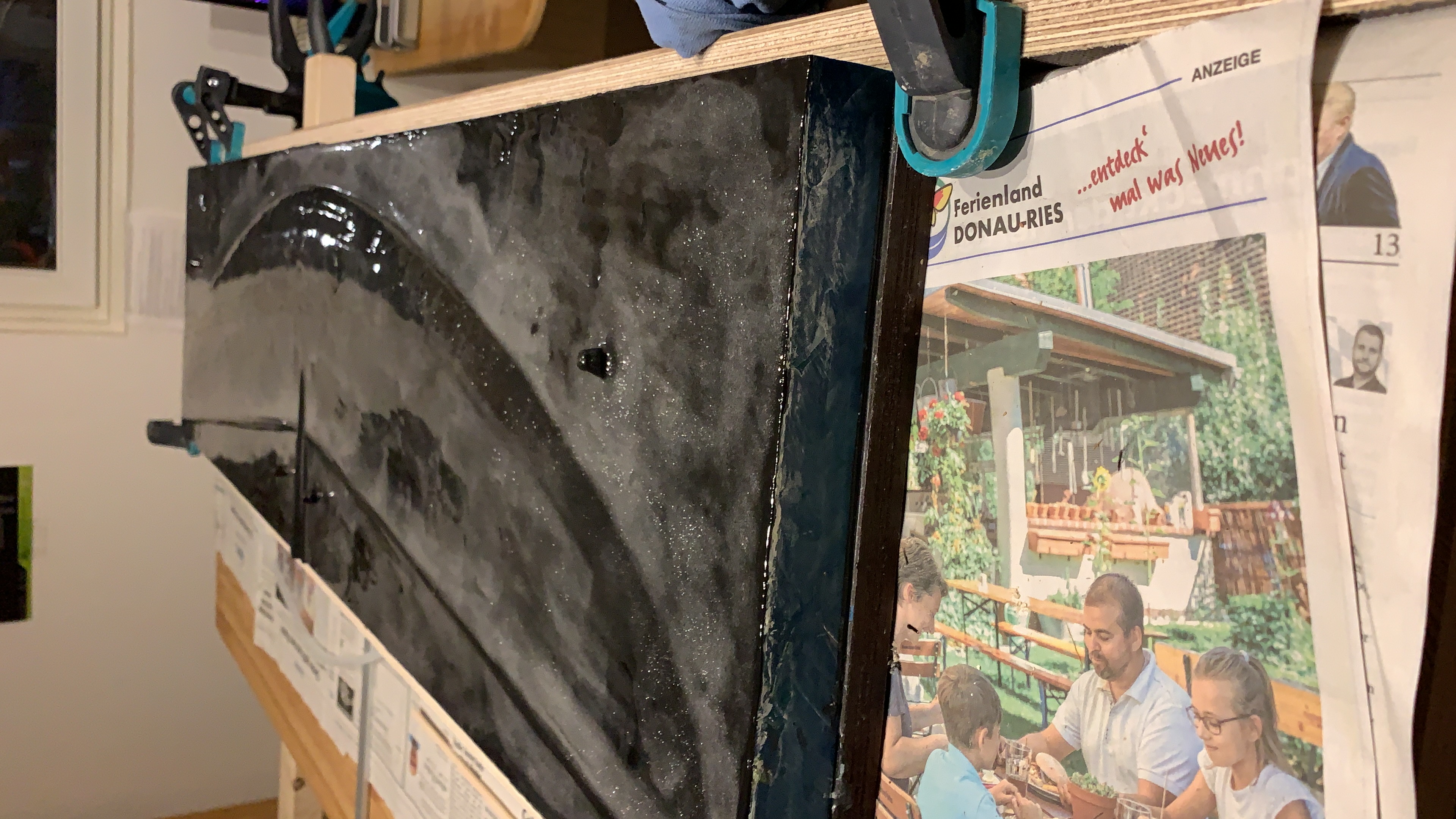 Als erstes habe ich eine Finne laminiert. Hartschale 25g Glas und irgendein rumliegendes Spreadtow Gewebe.