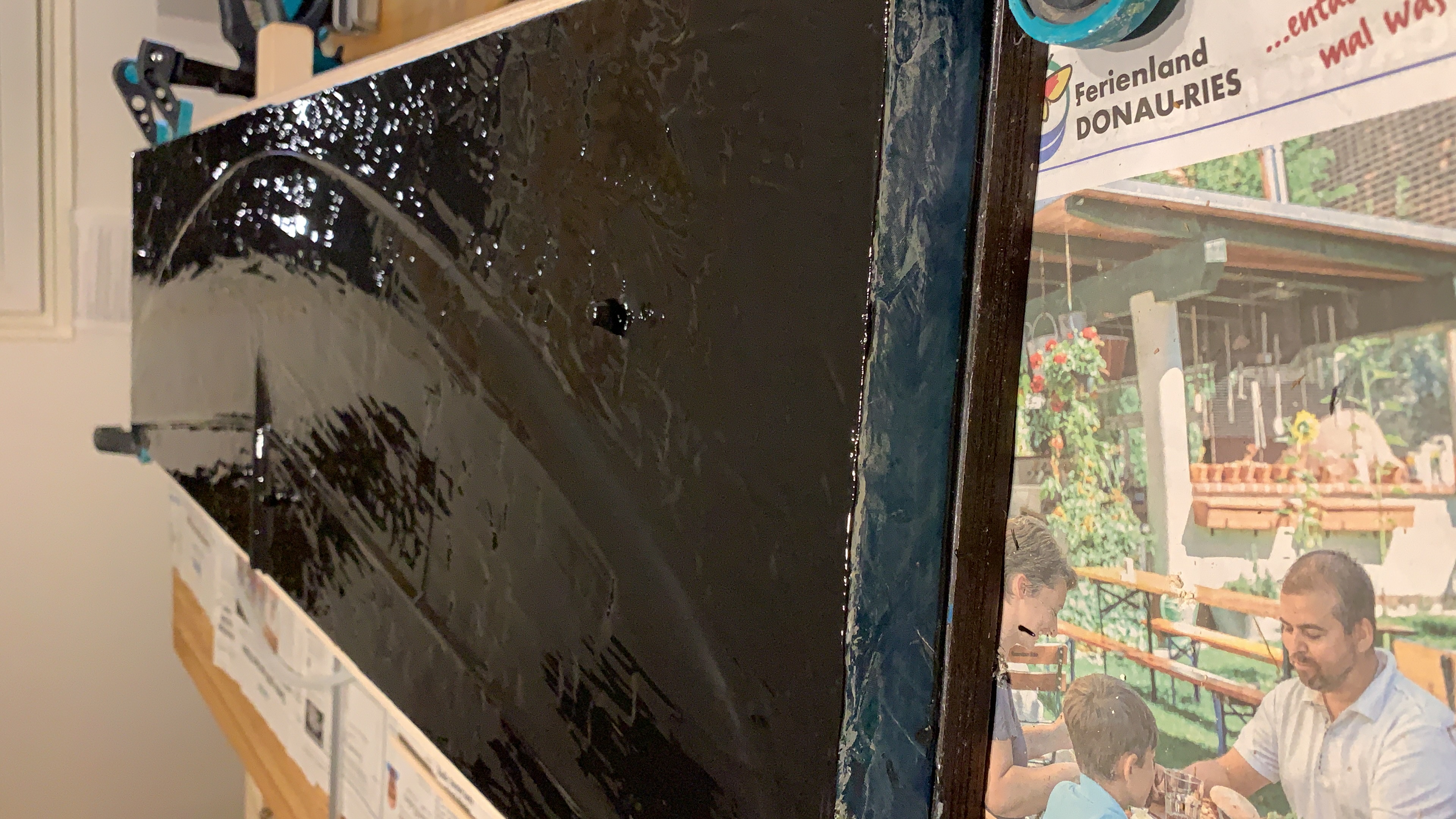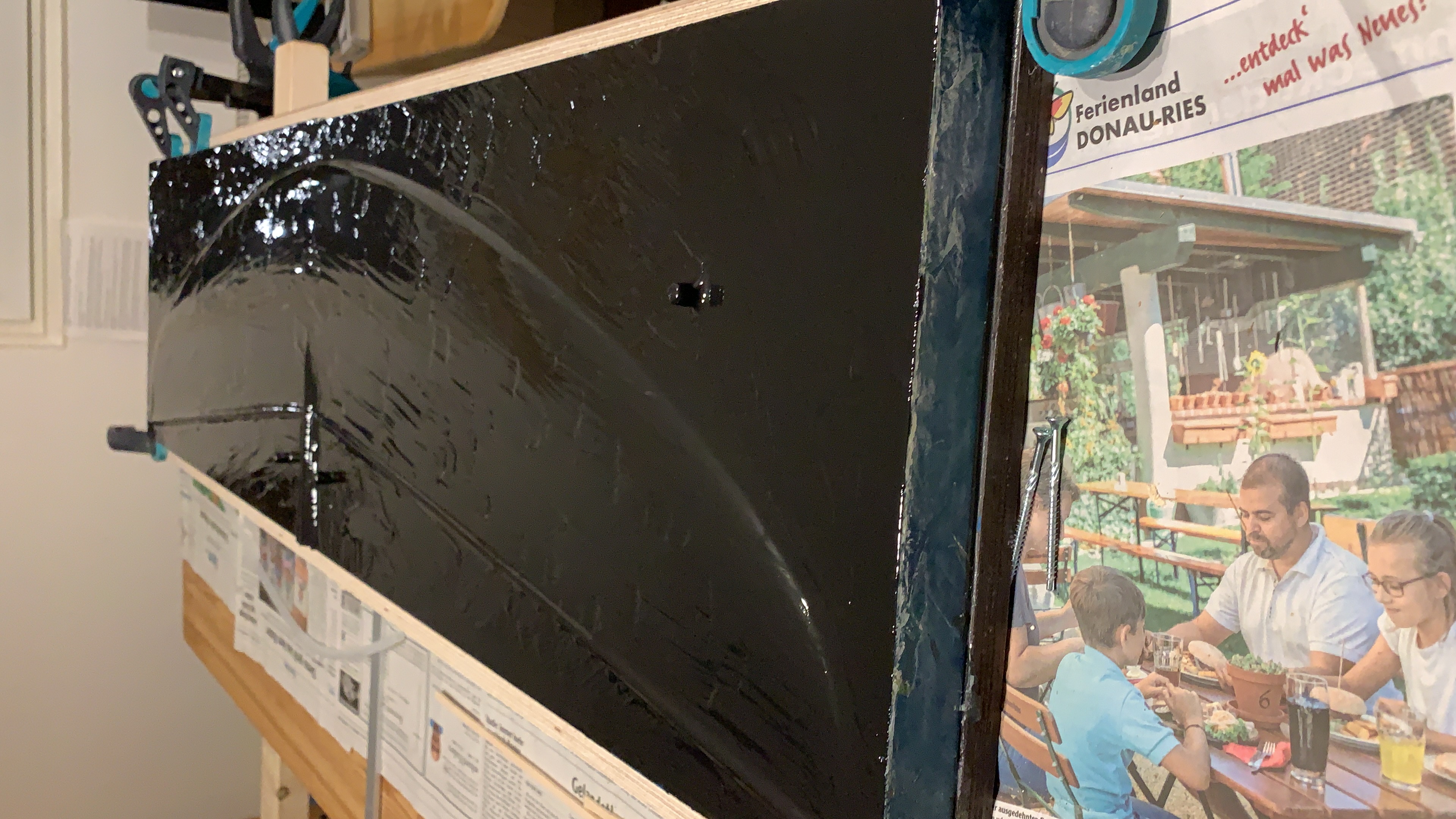 Jetzt heißt es Die Ränder und die Trennkante verschleifen, die Verschraubungen anbringen und wachsen.