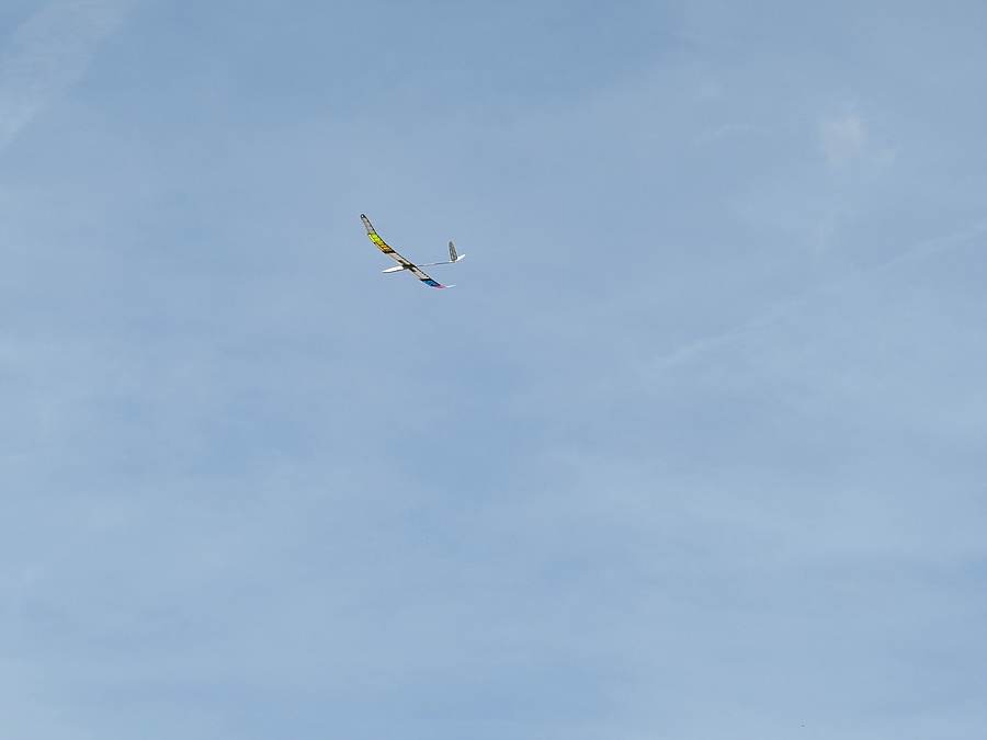 Hallo Leute, das habe ich heute mal probiert und möchte es definitiv nicht noch einmal fliegen. Ein Verbinder war heute zunächst verschollen, also hab ich die Starkwind-Hochstart-Versteifungsrohre des Mittelstücks als gerade Verbinder benutzt. Damit wird aus dem agilen Zweiachser eine träge Mühle die zu jeder Kurve lang und ausführlich überredet werden muss. Ich war froh dass der am Freitag verlorene geknickte Verbinder unter Thomas` Auto wieder gefunden wurde und ich wie gewohnt eng und dynamisch Thermik kreisen konnte.chris2f4u hat geschrieben:Ist dann nur mal der Neugierde halber nen Versuch wert was weniger V-Form bewirkt.
