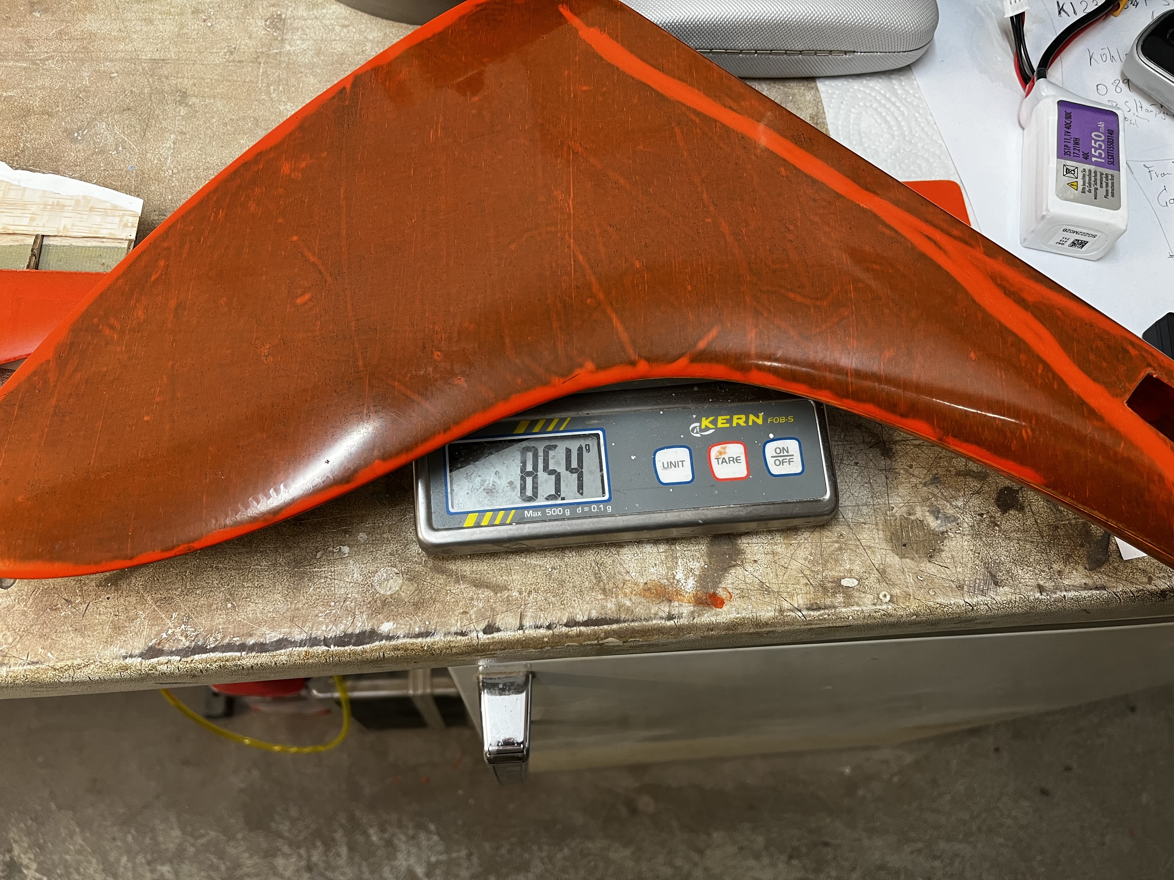 880gr mit allen 4servos da fehlt noch. Der Akku 3s, die Flightcontrol, GPS empfänger, RC empfänger und das pitotrohr mit elektronik, bügelfolie und vielleicht 100-150gr Blei, jetzt träume ich mal von 1,5 kg TOW.