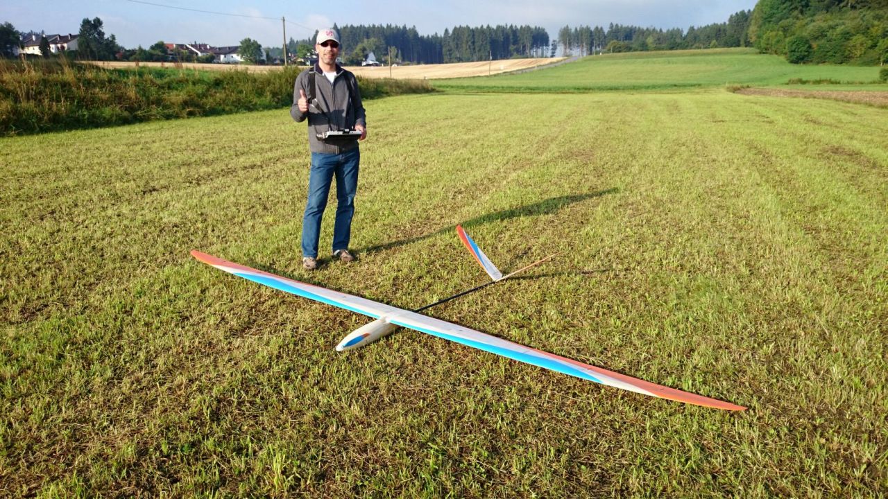 Wie Michi schon geschrieben hat, habe ich am Anfang noch keine Butterfly oder größere Wölbklappenausschläge programmiert, das kommt noch. Ich habe gestern erst noch den Rumpf im Chremweiß lackiert, ein paar Flächenschutztaschen angefertigt usw. Akkus bestellt, so das sie nach meinem Urlaub da sind und ich weiter ausgiebig testen kann.