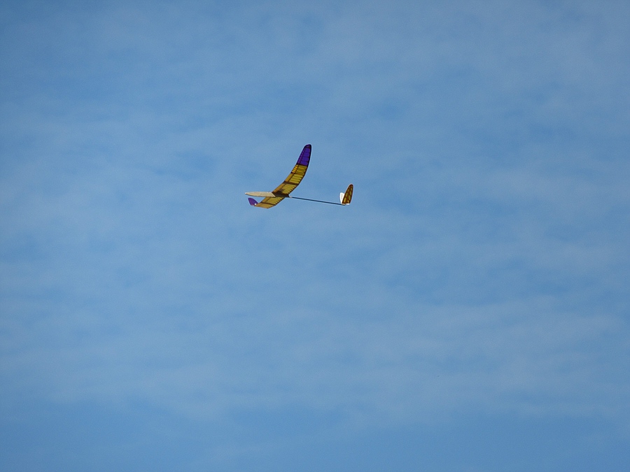 Ich hatte leider Pech mit der Technik, die Servos vom Antist-RES haben beim ersten einschalten nur mal kurz gezuckt, dann waren sie tot und auch durch Empfängerwechsel nicht mehr zu beleben, die Ursache muss ich erst noch finden. Ich hatte den GezoRES versehentlich nicht eingepackt und nur noch der durch Verzug vollkommen krumme ARES lag im Auto. Damit musste ich wohl oder übel den schiefen Nurflügel fliegen, dessen Auslegung noch aus der Zeit der ersten Generation deutscher RES-Modelle stammt und inzwischen in die Jahre gekommen ist.
