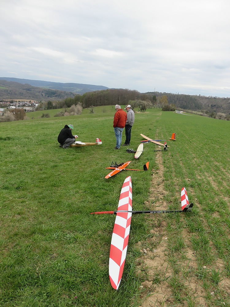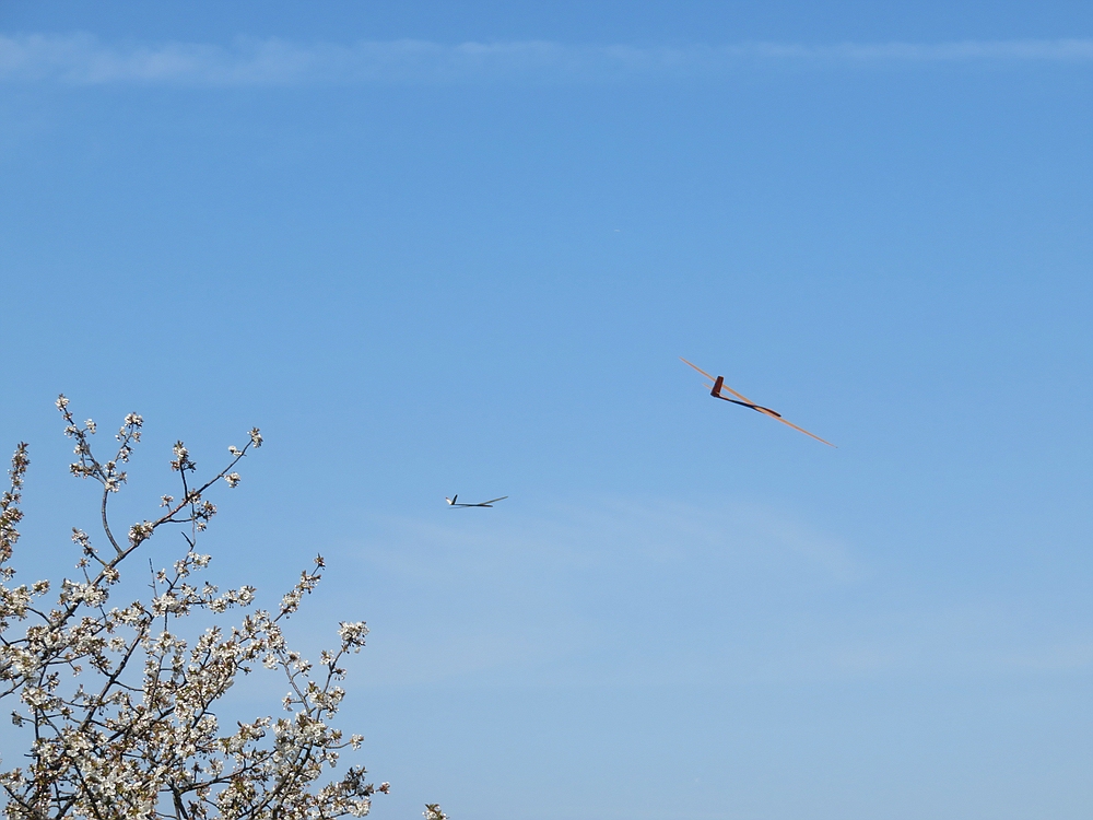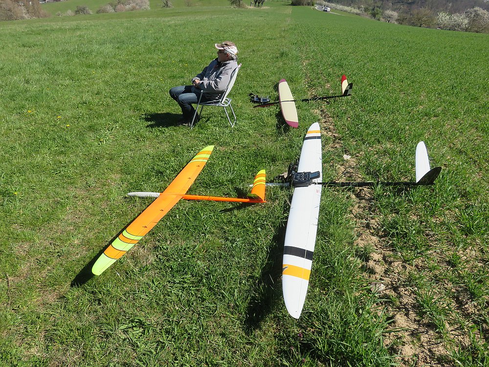 Jörg hat seine neuen Lee- Flieger mutig zum ersten mal vor den Hang geschmissen und mein alter Erwin vom Azoren-Urlaubs-DS-Bruch 2018 hat endlich wieder neue Flächen und durfte damit die ersten Einstellrunden vorm Hang und im Lee drehen.