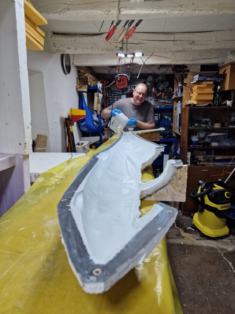Diese Werkstattsaison werden am Ende hier hoffentlich insgesamt 3 Förmchen entstanden sein. Das nächste wird die Libelle aus dem überarbeiteten Urmodell von Johannes. Geplant ist am 1.3. den ersten Rumpf dorthinein zu laminieren.