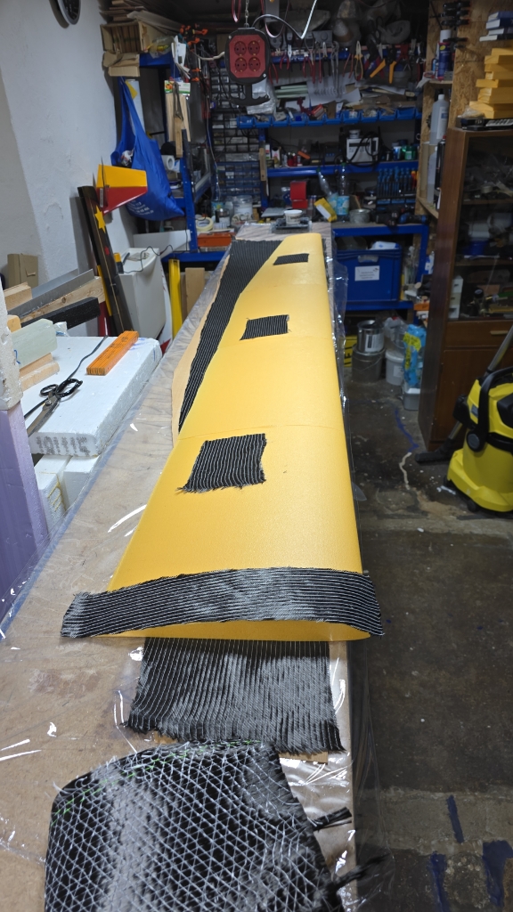 2,3kg ist mega! Dh, die Flächen sind am Ende gut 300g leichter als die der 15, bei deutlich mehr Flächeninhalt, aber, eben durch die größere Tiefe und höhere Dicke, ähnlicher Stabilität. Der Plan ist also voll aufgegangen. Das Gewicht wird imho bei 8kg oder im besten Fall, dank der langen Nase und kürzerem Leitwerksträger und dadurch weniger Blei, leicht darunter bleiben. Träumchen.