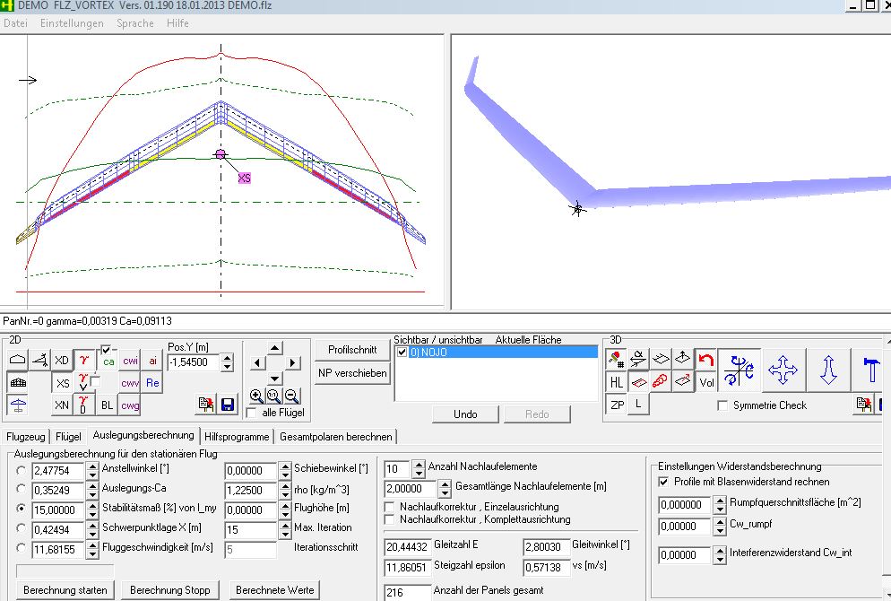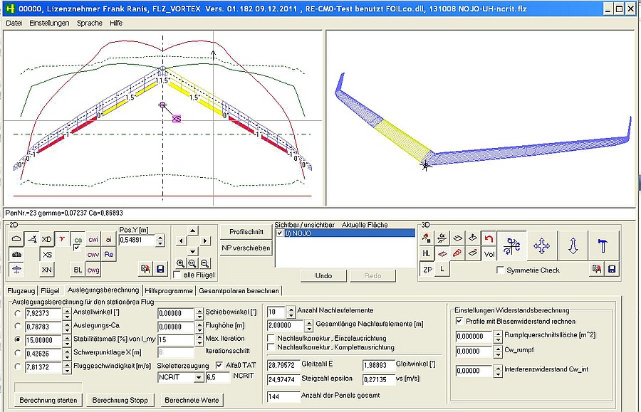 Zeig doch mal den interssanten Teil vom Screenshot aus Flz Norbert. Den in der Mitte wo Steigzahl, Gleitzahl und minimales Sinken stehen :) und erzähl uns doch bitte was zur Auslegung. Ich mein jetzt nicht welche Profile sind verbaut, sondern für welchen Zweck/ Bedingungen (außer Fliegen :P ) der Flieger ausgelegt ist.