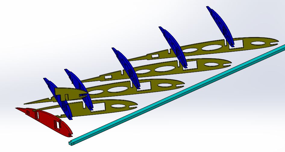 Die ersten 4 Rippen werde mit 0.8 mm Sperrholz Beplankt deswegen habe ich es darauf umkonstruiert .