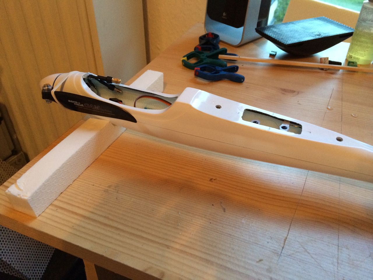 Dementsprechend musste ich natürlich auch am Stecker am Rumpf eine Ecke wegschneiden.