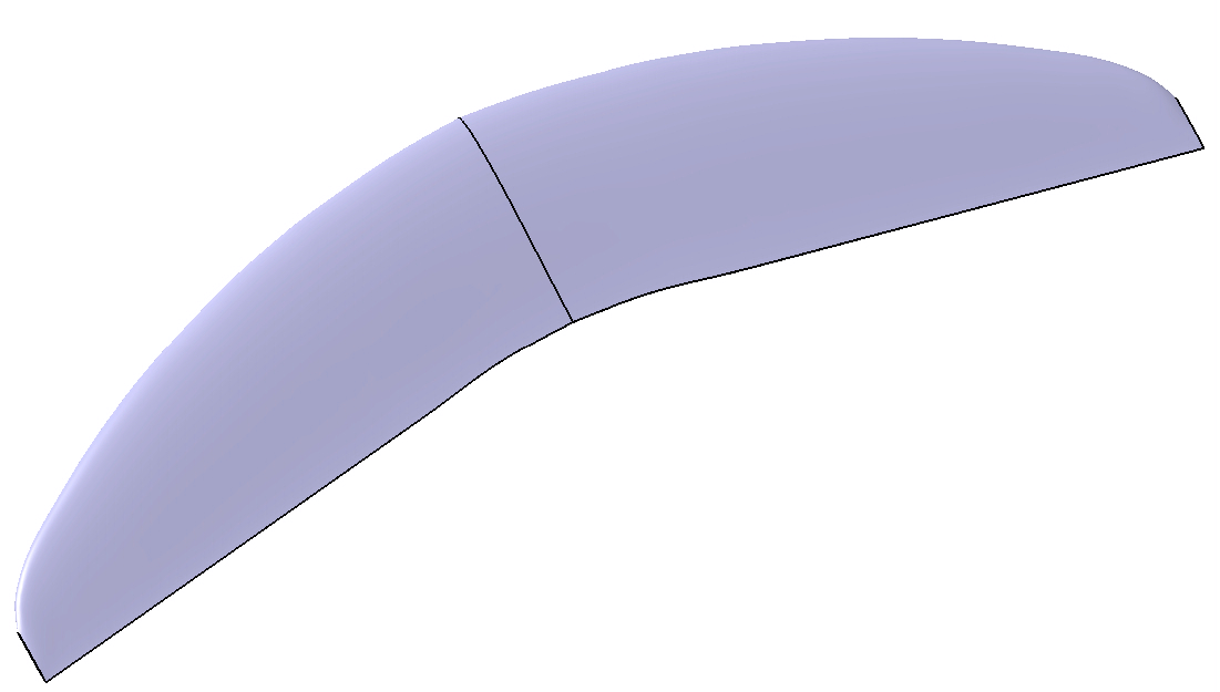 An der Nasenleiste ist das zwar gewünscht, nur hatte ich nicht bedacht, das dadurch natürlich bei meiner jetzigen Geometrie an der Endleiste eine leichte Wellenform zwischen der Wurzelrippe und der 2ten Rippe entsteht. Das kommt, da ich von der Wurzelrippe zur 1sten rippe an der Endleiste 3,7° und danach durchgehens 10° genommen habe. Dadurch entstand einfach der schönere Bogen :roll: