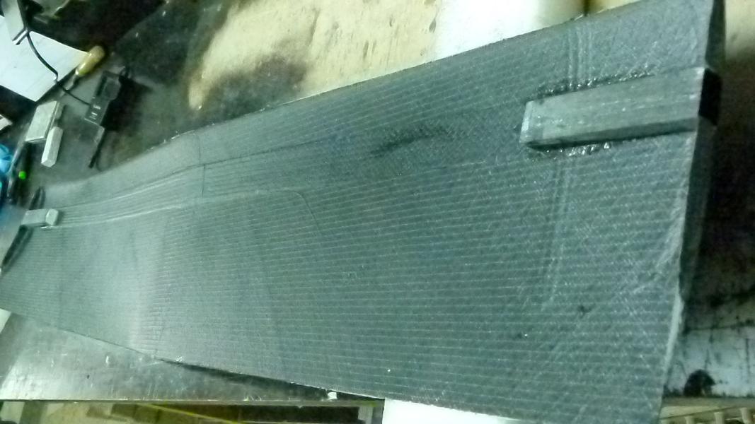 Ich verwende nur noch langes harz 110 minuten tropfzeit erfahrungsgemäß ist man bis alle Rovings und verstärkungen Platziert sind deutlich über der Tropfzeit und hat klelbriges Zeug im Laminat. Die Anbindung an den Schaum ist bei Harzmagel dann wahrschelich nicht gewährlsietet, da scheint meine Wärmebehandlug doch was zu bringen. Hier ist unter dem 25gr Glas in den Zwischräümen des Biax Cfk und neben den Nähten wirklich reichlich Luft im Spiel. Das Oberlfächenlaminat mit dem Biax weigt zurückgerechnet 200gr/m" Die Tragfläche hält aber für den Holm grenzwetige Biegungen aus ohne Delamiantionen.