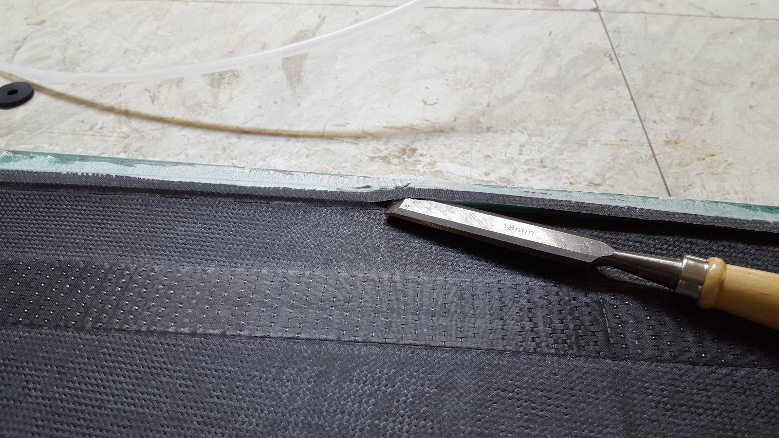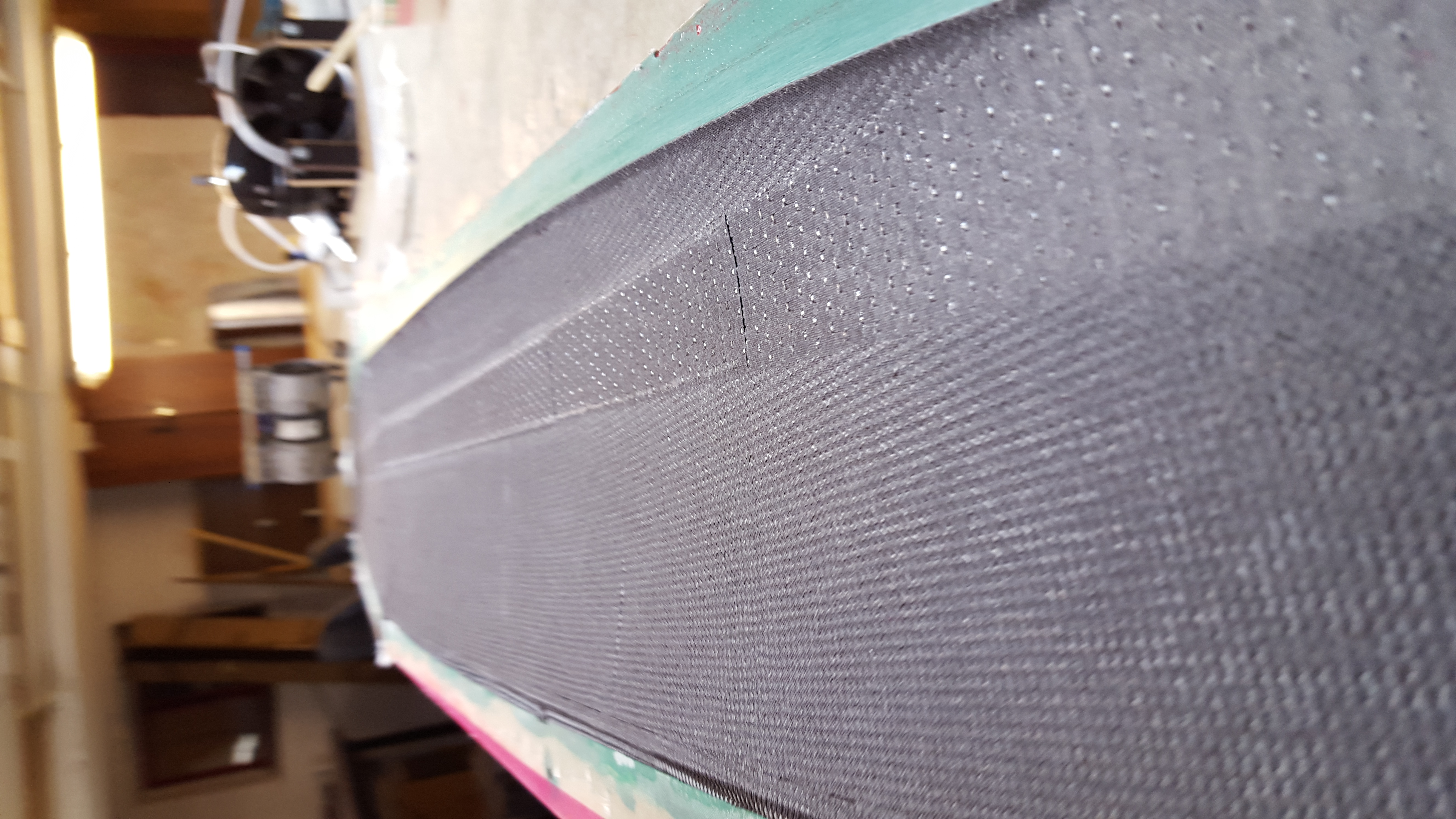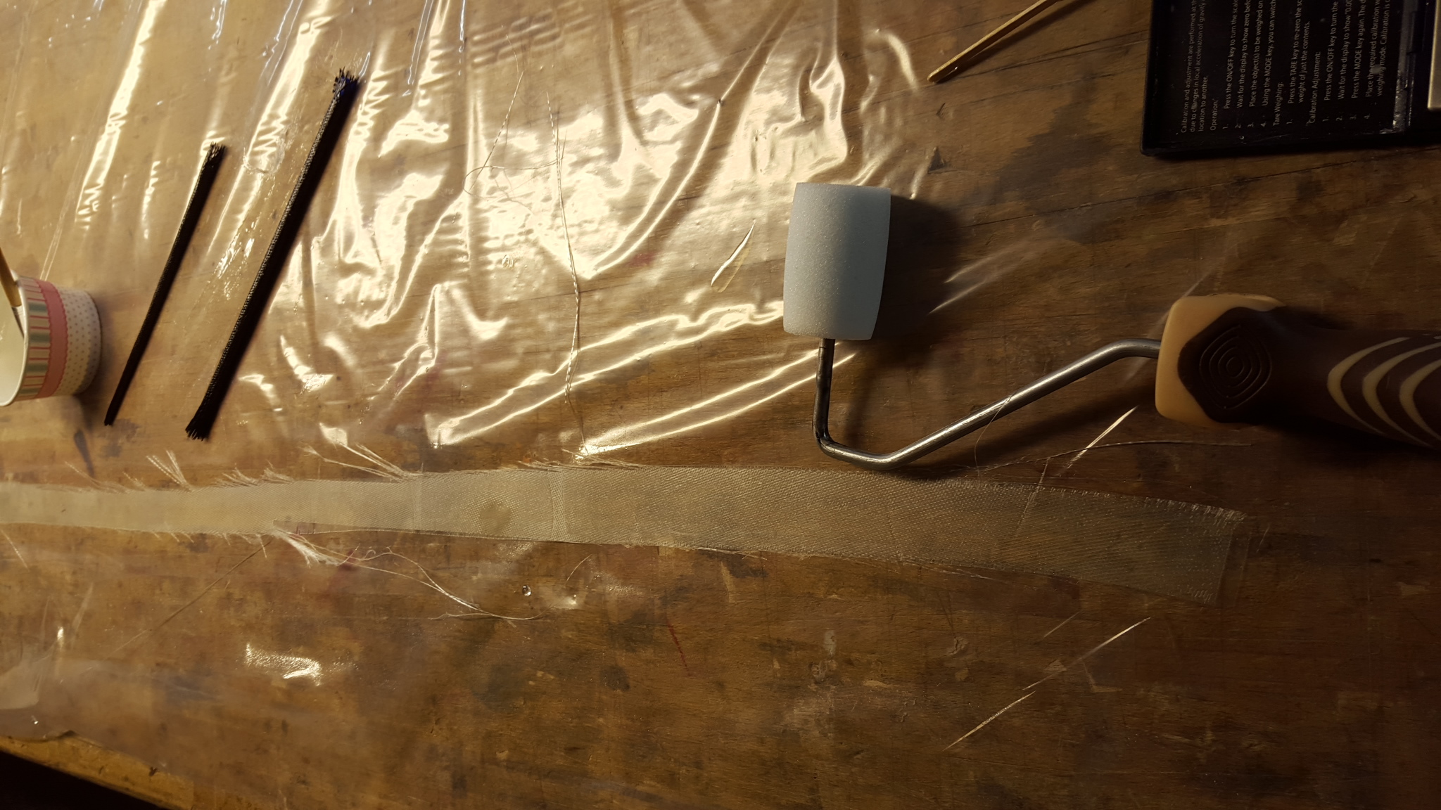 Die Glasbänder haben wir dann gemütlich in den Rumpf trapiert. Eile ist hier keine geboten, da es jetzt sowieso warten heißt. Oder noch einen weiteren Härter kaufen, der weniger Topfzeit bietet. Zuvor wurden die Kontaktflächen mit Harz angepinselt.