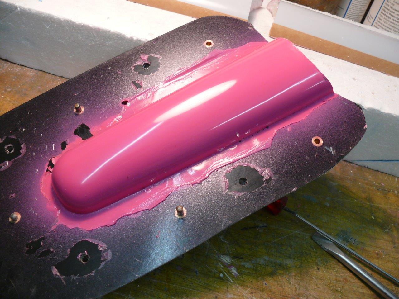 Ja habe ich schon gefuellt, mit tesa und formenharz aber nur das tixotrophe ohne Metall das ist gut aus kontour und eh nur der letzte mm der form, man wird es kaum sehen, heute wird die erste nase in "Maedchenfarbe" wie die kollegen scherzen entformt...
