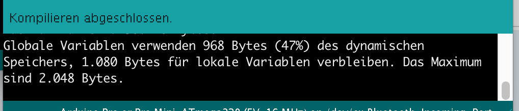 Vielleicht ist das Programm doch nicht richtig kompiliert. Ich habe nach dem verifizieren/kompilieren folgende Info im schwarzen Feld: