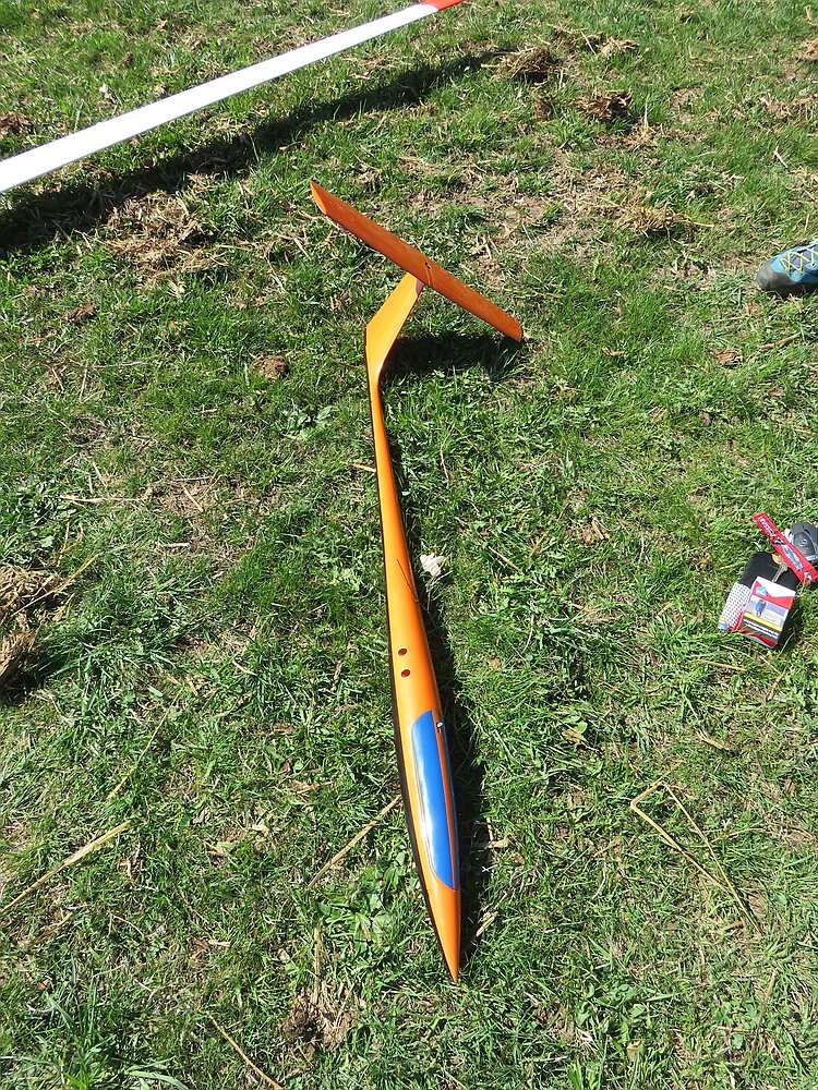 Aus Elmars neuer Form sind in letzter Zeit einige Rümpfe geschlüpft und vor allem Lutz fliegt den Typ sehr oft. Sein oranger ist mit einem klassischen Einfachtrapezflügel und T-Leitwerk aufgebaut und damit kann ich vor Baubeginn schon mal zeigen wie mein Whisper-DS mal in etwa aussehen soll, denn ich habe mich für die gleiche Konfiguration entschieden: