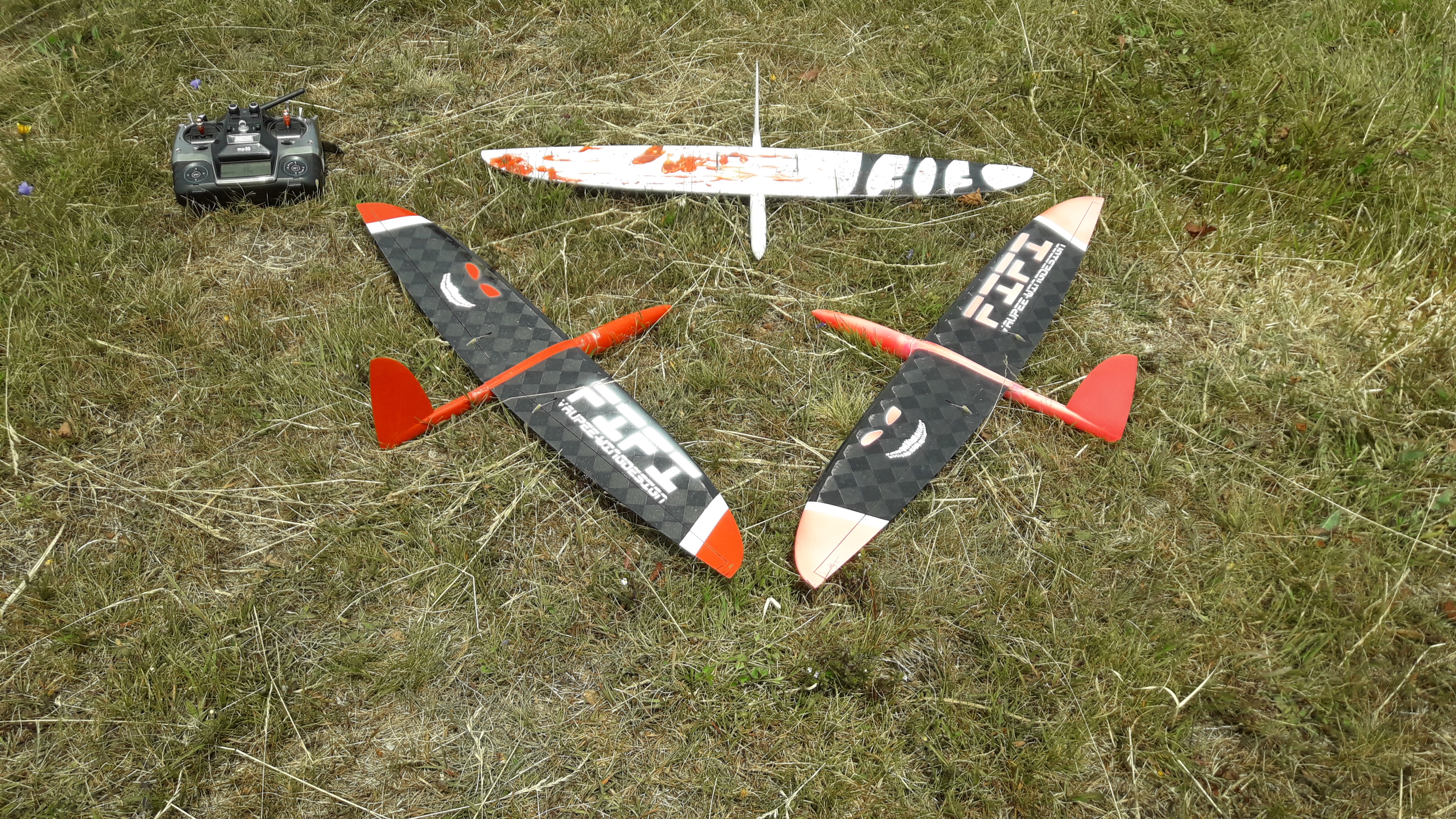 Nach kleiner überarbeitung ( etwas V-Form und zweiteiliger flügel, neuer Rumpf, größeres SLW) haben wir anfang Juli den neuen Formensatz aus plexiglas gefräst und 2 modelle in unzerstörbarer Rhön-Ausführung gebaut.