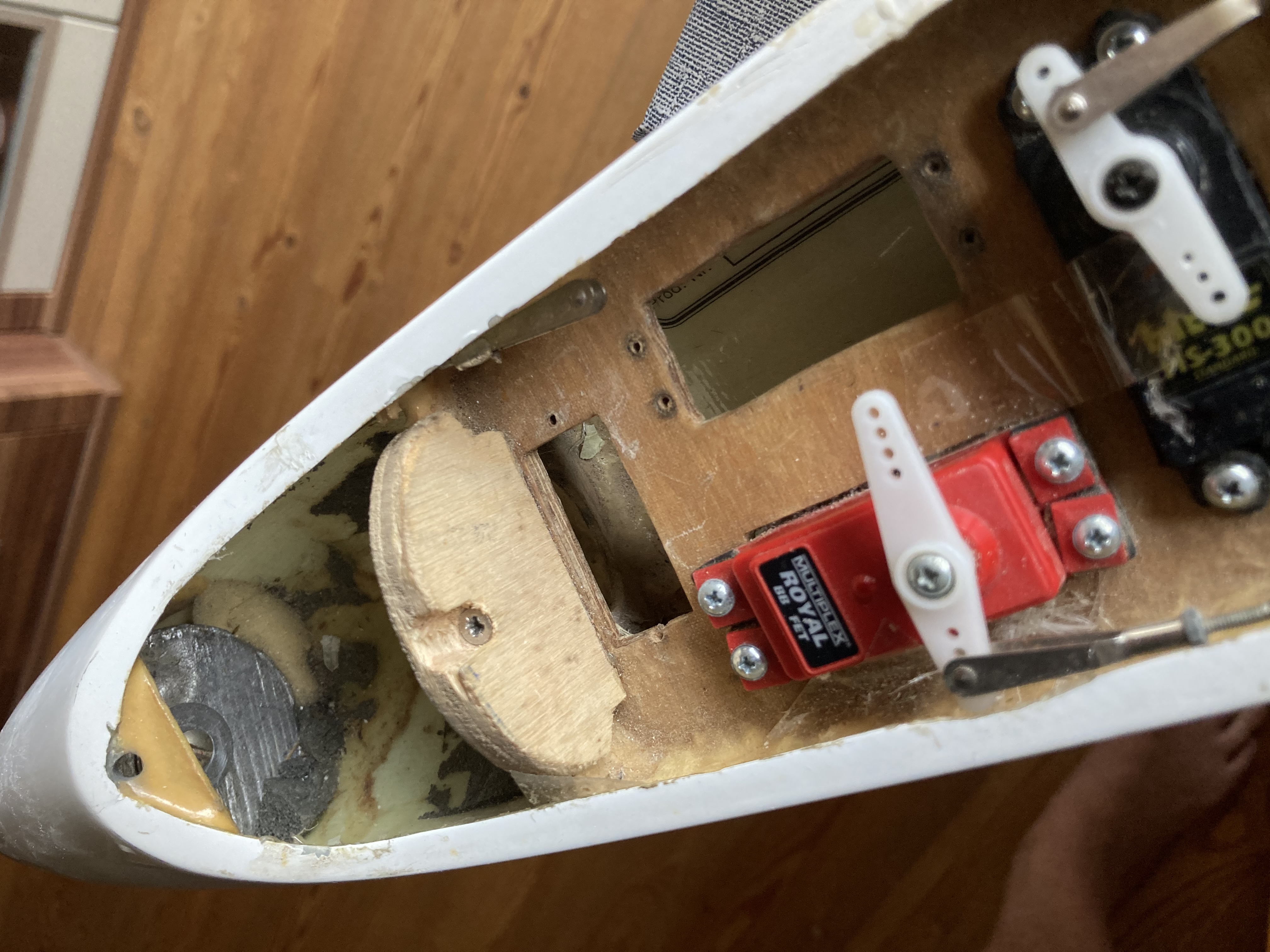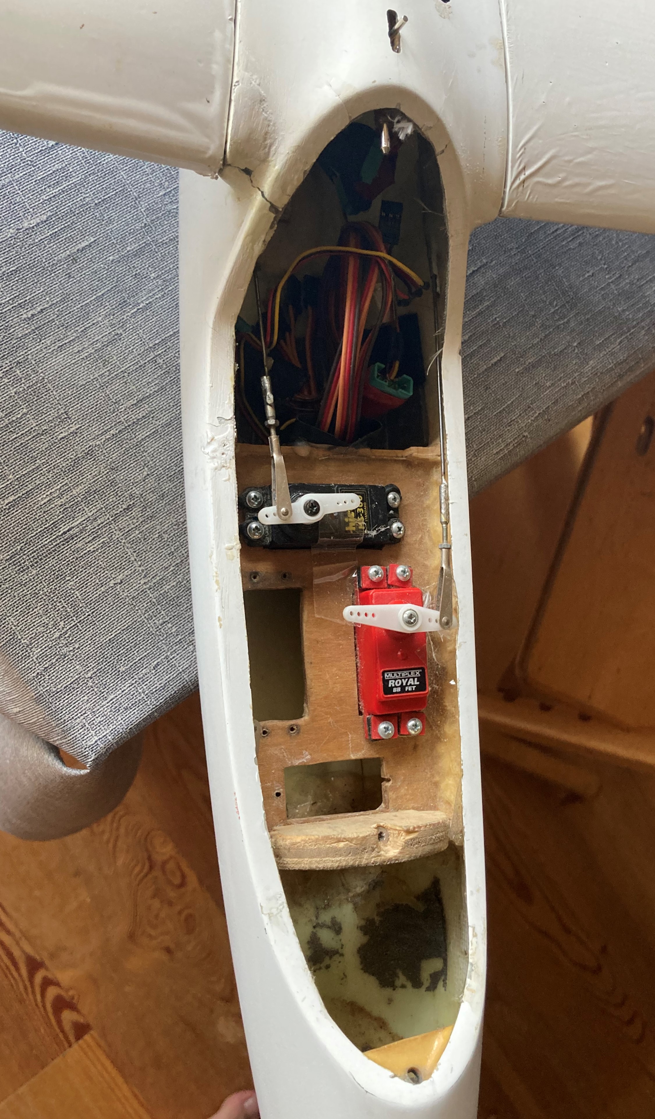 Der Flieger ist im jetzigen Zustand fliegbar und war vor kurzem noch in der Luft. Also bevor ich Arbeit investiere lieber fliegen wie bekommen und vielleicht noch die Querruder über Wasserdampf begradigen und auf eine Heling spannen zum trocknen.