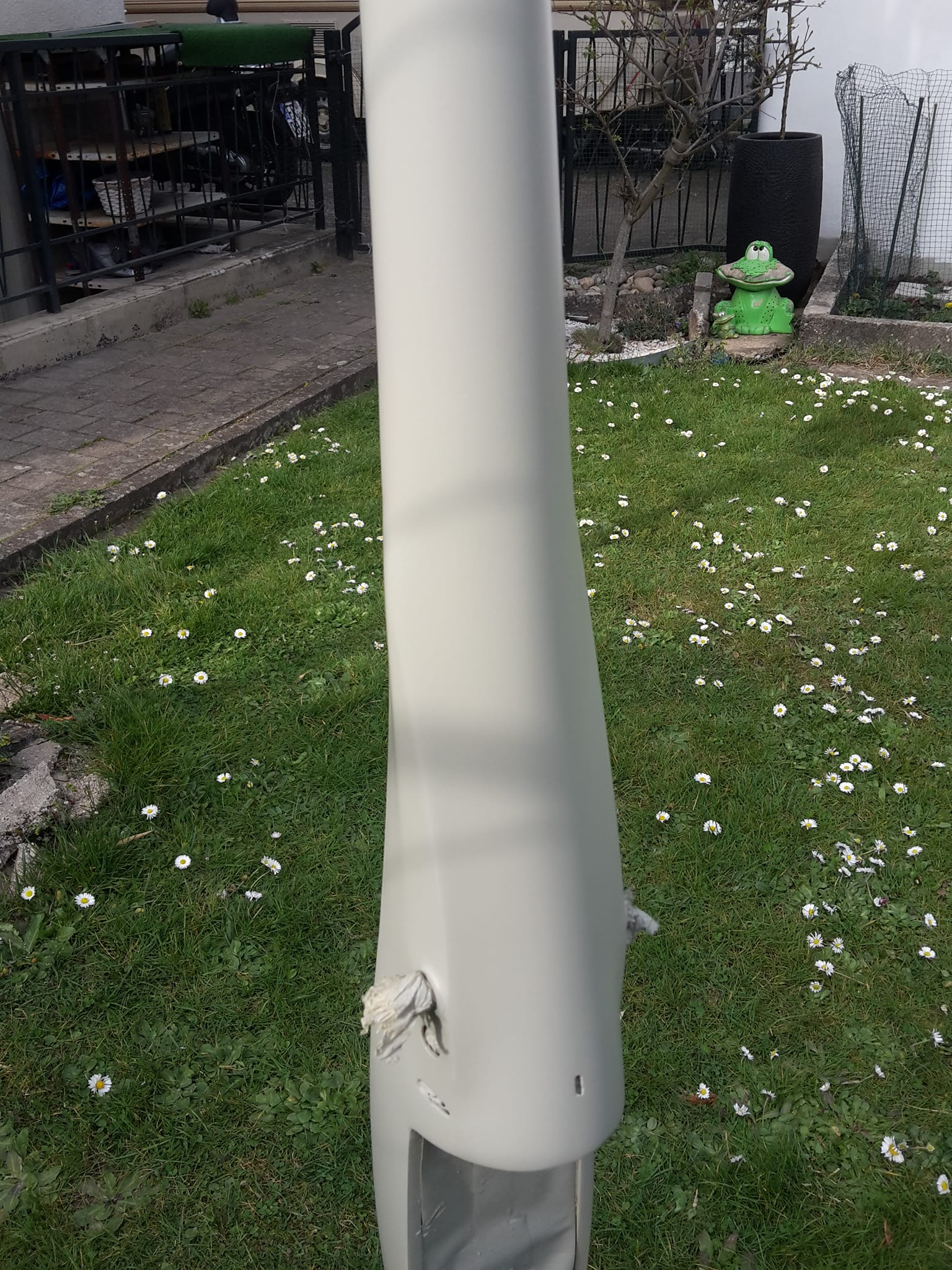 Ich denke das werde ich versuchen, erst muß ich noch ein paar Stellen schleifen. Laminiert ist alles, auch fast entlackt, da der Lack des Vorbesitzers nicht wirklich gut hält. Ich denke der Rumpf ist jetzt nach der Reperatur leichter wie vorher.