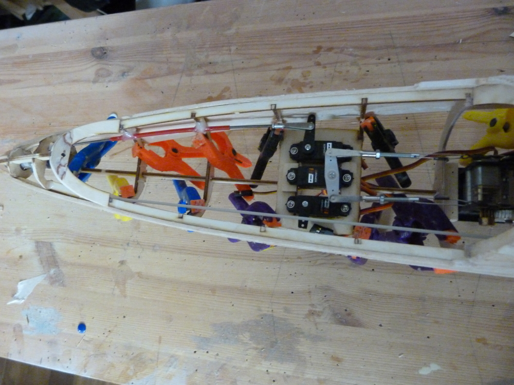 Der Seitenruder-Antrieb ist über Steuerseile.